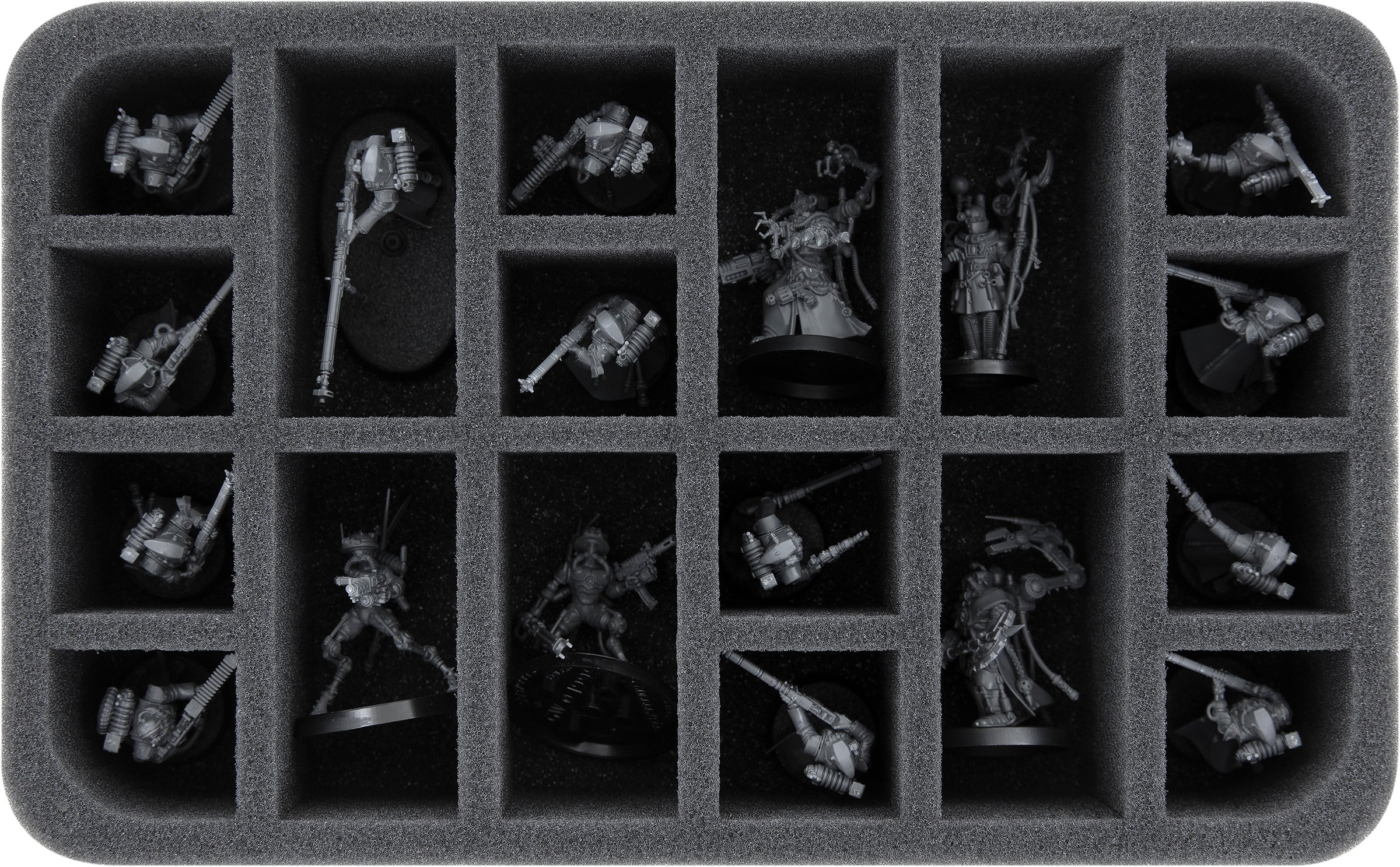 This MEDIUM PLUS bag, filled with matching Feldherr foam trays, keep all miniatures of your Adeptus Mechanicus "Elimination Maniple" battleforce.