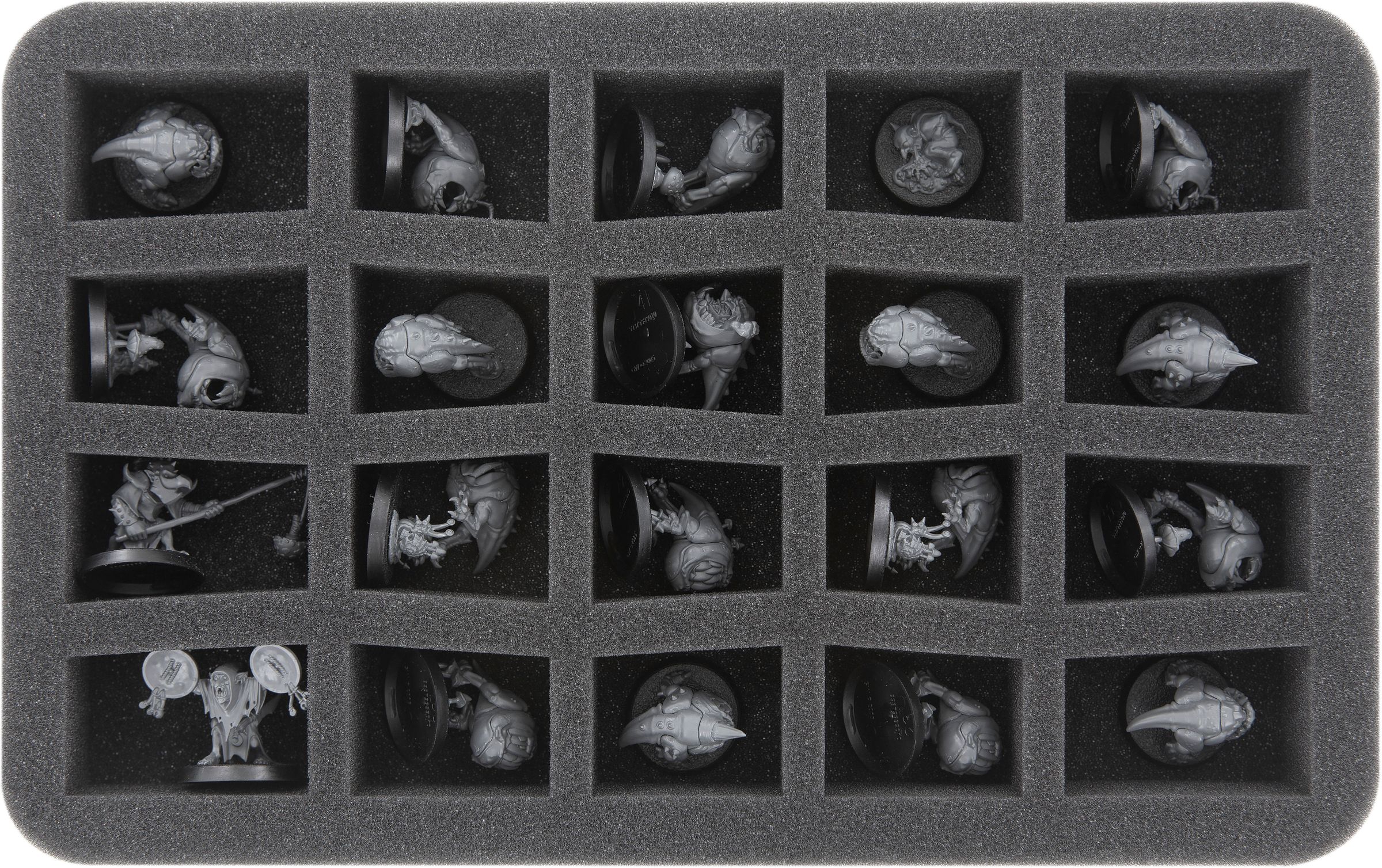- 2 Half-Size foam trays, each with 20 compartments for e.g. Cave Squigs, Squig Herders (HS035WH57)
