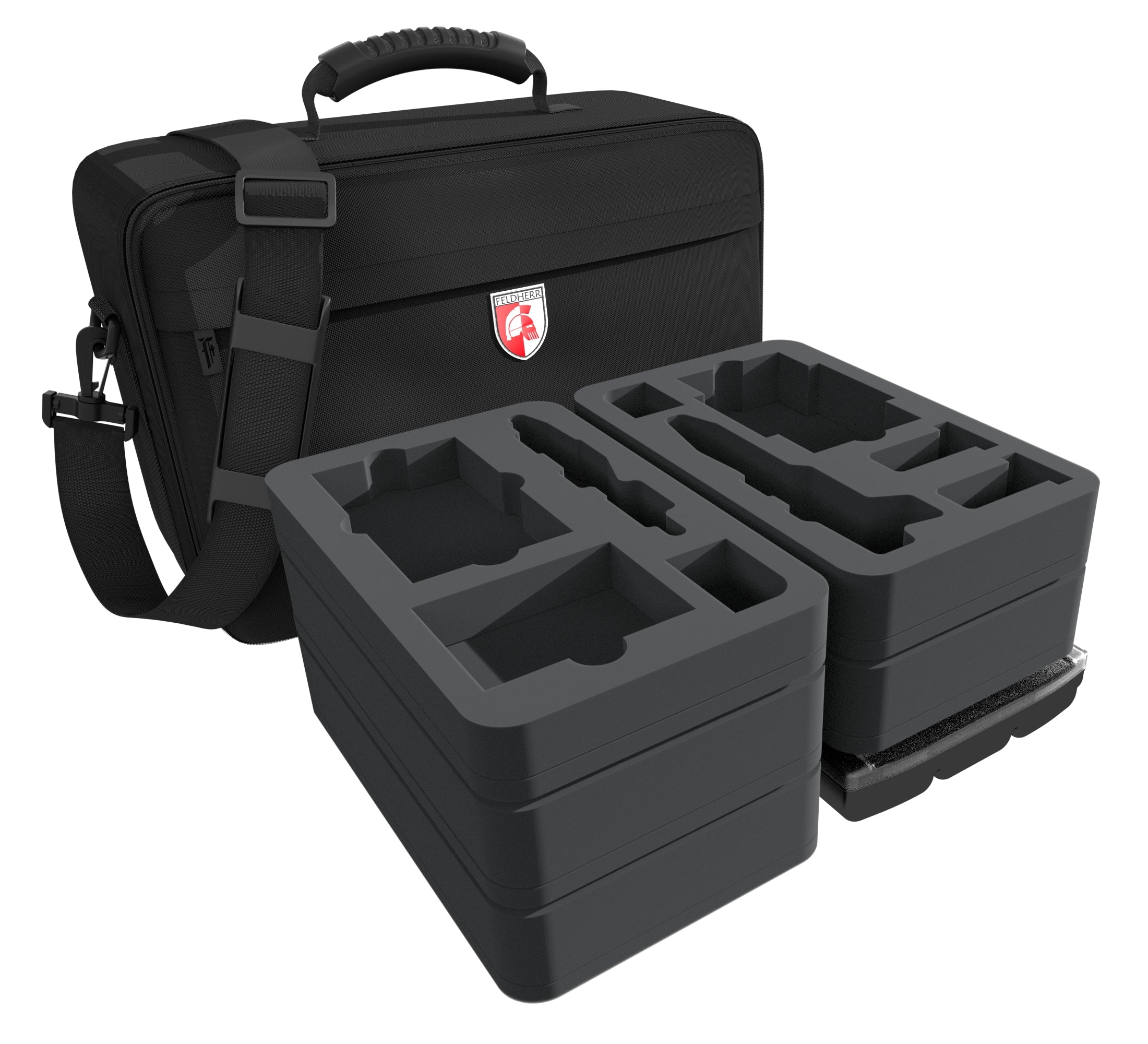 But the Galaxy is a mean place. Many dangers await your models on the way to the next game. Snapped turrets and chipped colors are just the tip of the iceberg. To ensure that nothing happens during transport, there is the MEDIUM PLUS bag, including custom Feldherr foam trays. This allows your fleet to be stored well protected and transported safely.