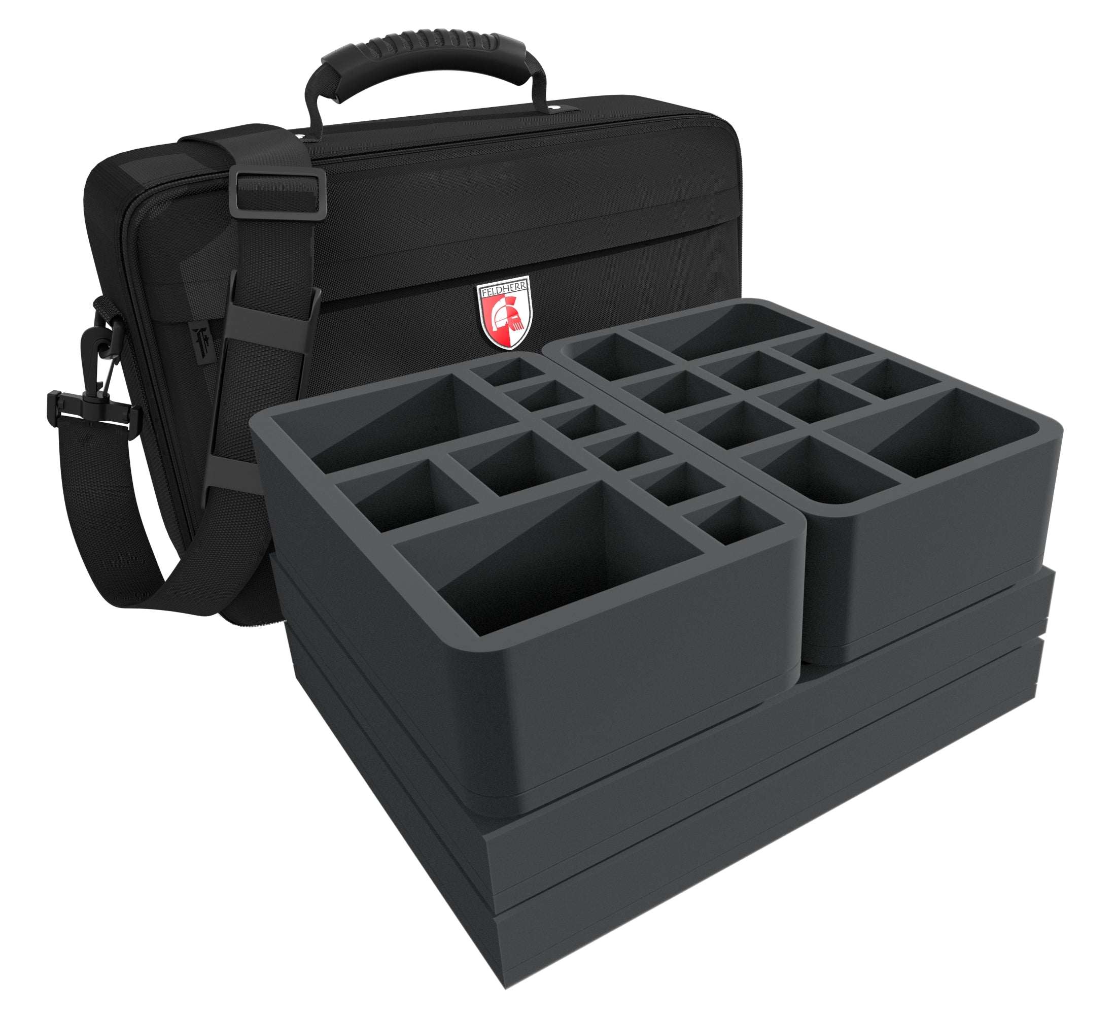 Thanks to the custom-fit compartments, the miniatures have a tight fit. Even if a Zombie nibbles at you during transport, the figures do not slip and remain in place. The soft, fine-pored foam protects filigree details from snapping off and the colors of your painted models from scratches and paint abrasion.