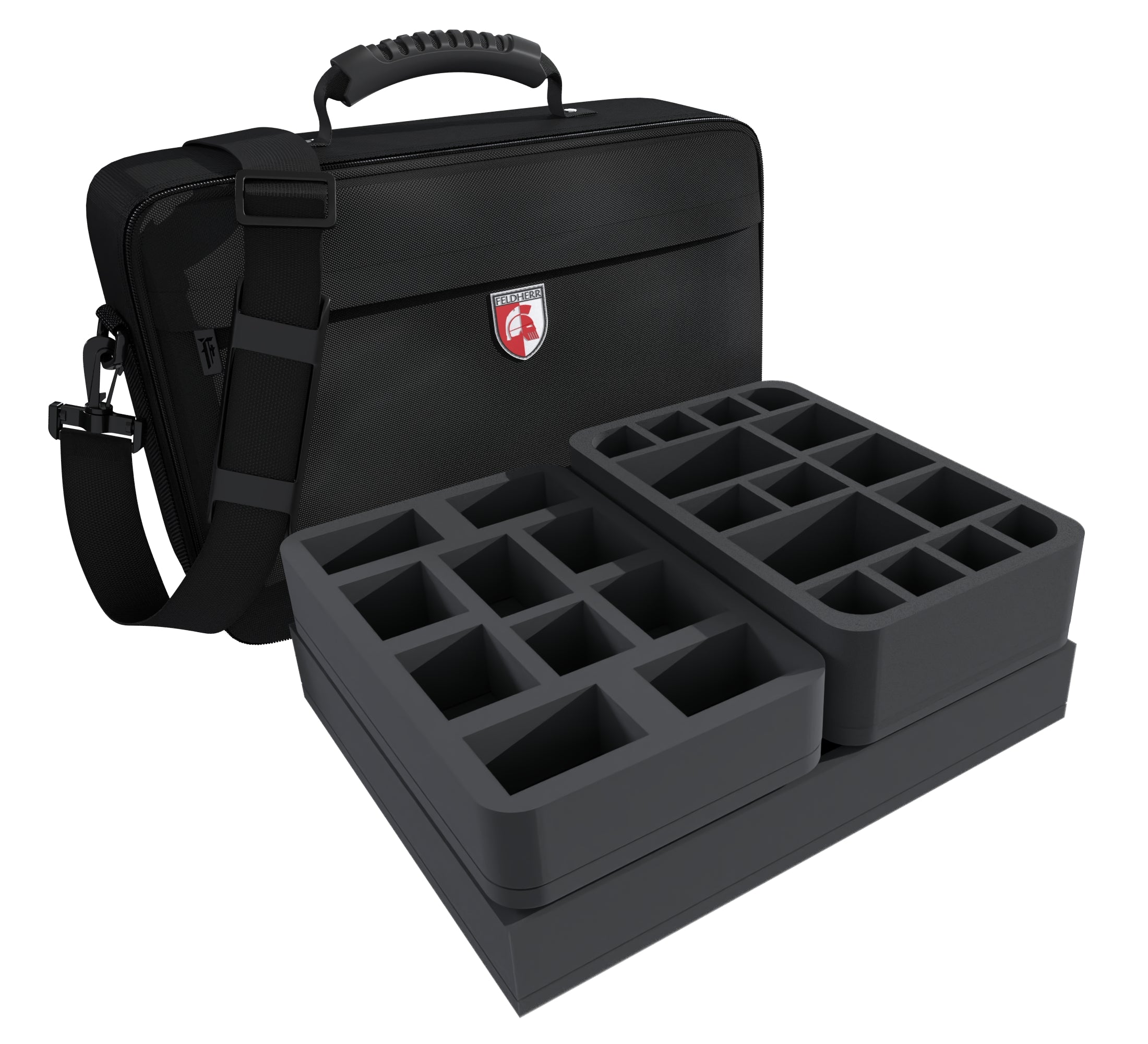 The Feldherr MEDIUM bag is made of particularly hard-wearing material. Padded side panels and a reinforced bottom ensure that your miniatures are optimally protected from external influences, even when transported by car or train.