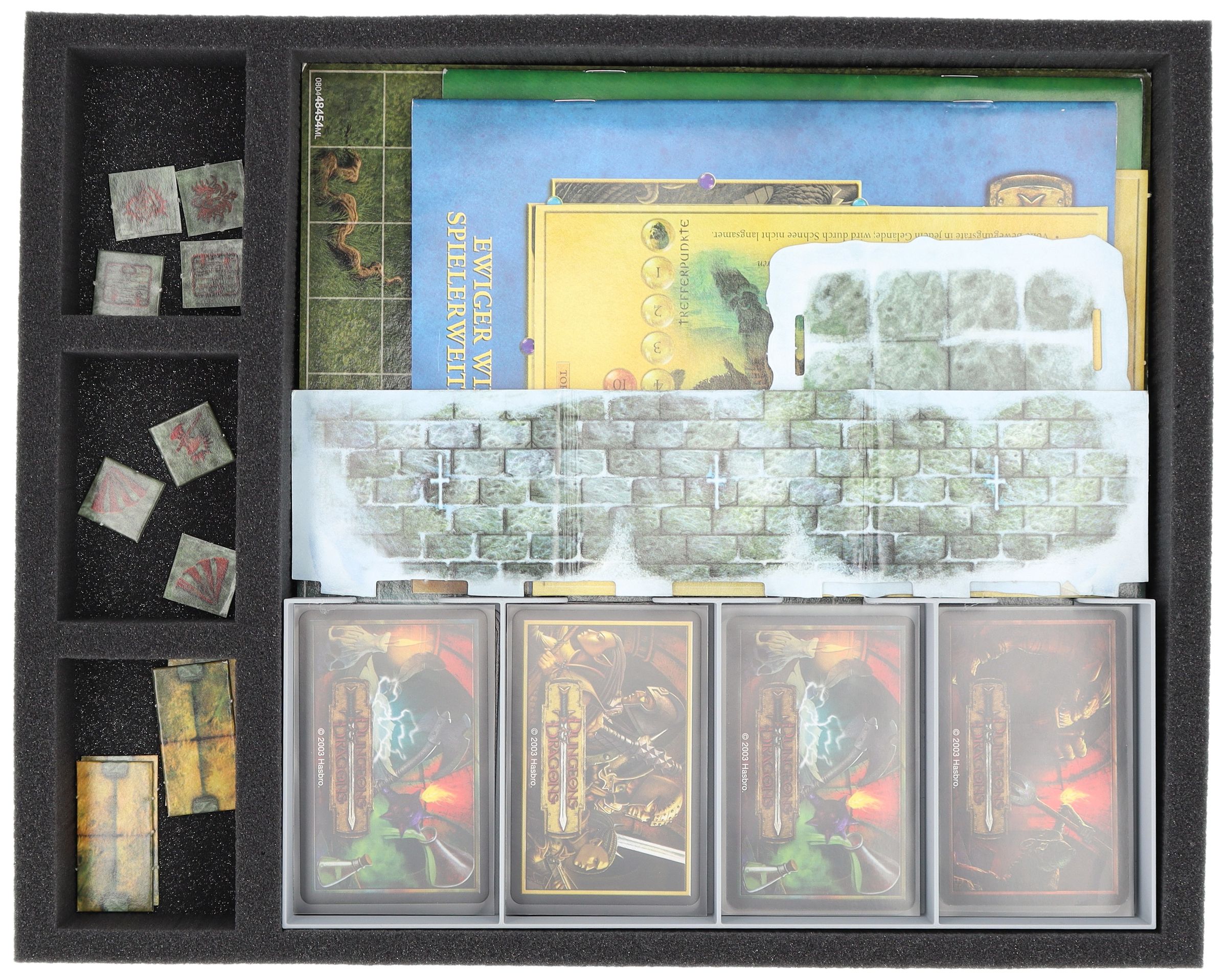 • 1 card holder (grey) with 4 compartments for game cards (max. sleeve size 61 mm x 93 mm) (65742)