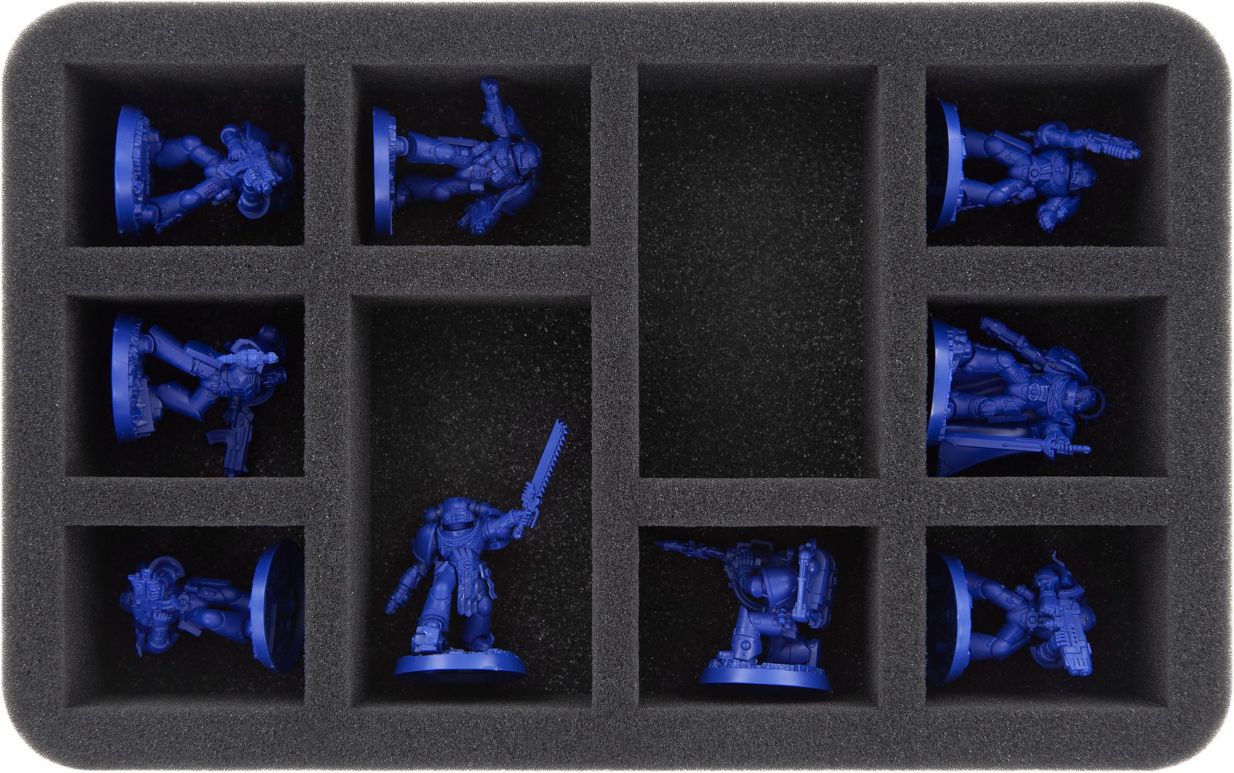 - 1 Half-Size foam tray with eight compartments for Primaris Lieutenant and Heavy Intercessors (HS050A121)