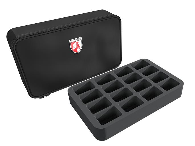 - 2 Half-Size foam trays with 16 compartments each for standard infantry like Hearthkyn Warriors and hero models like Brôkhyr Iron Master with the entourage, as well as models with similar dimensions (HS040A037)
