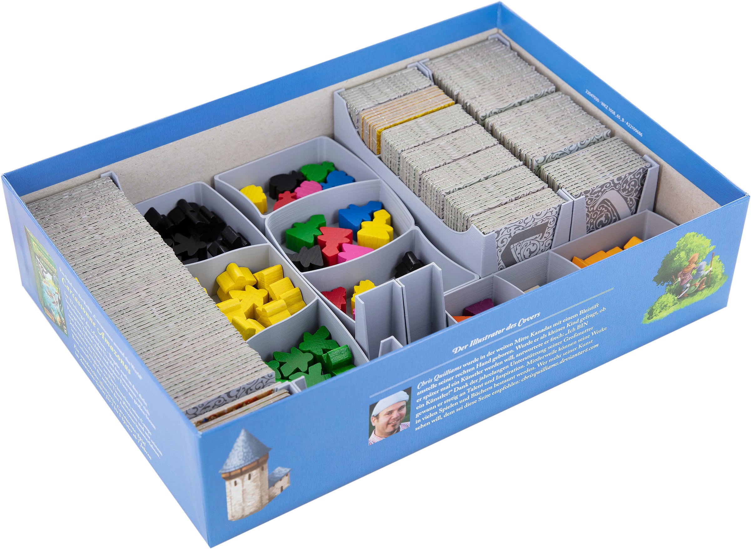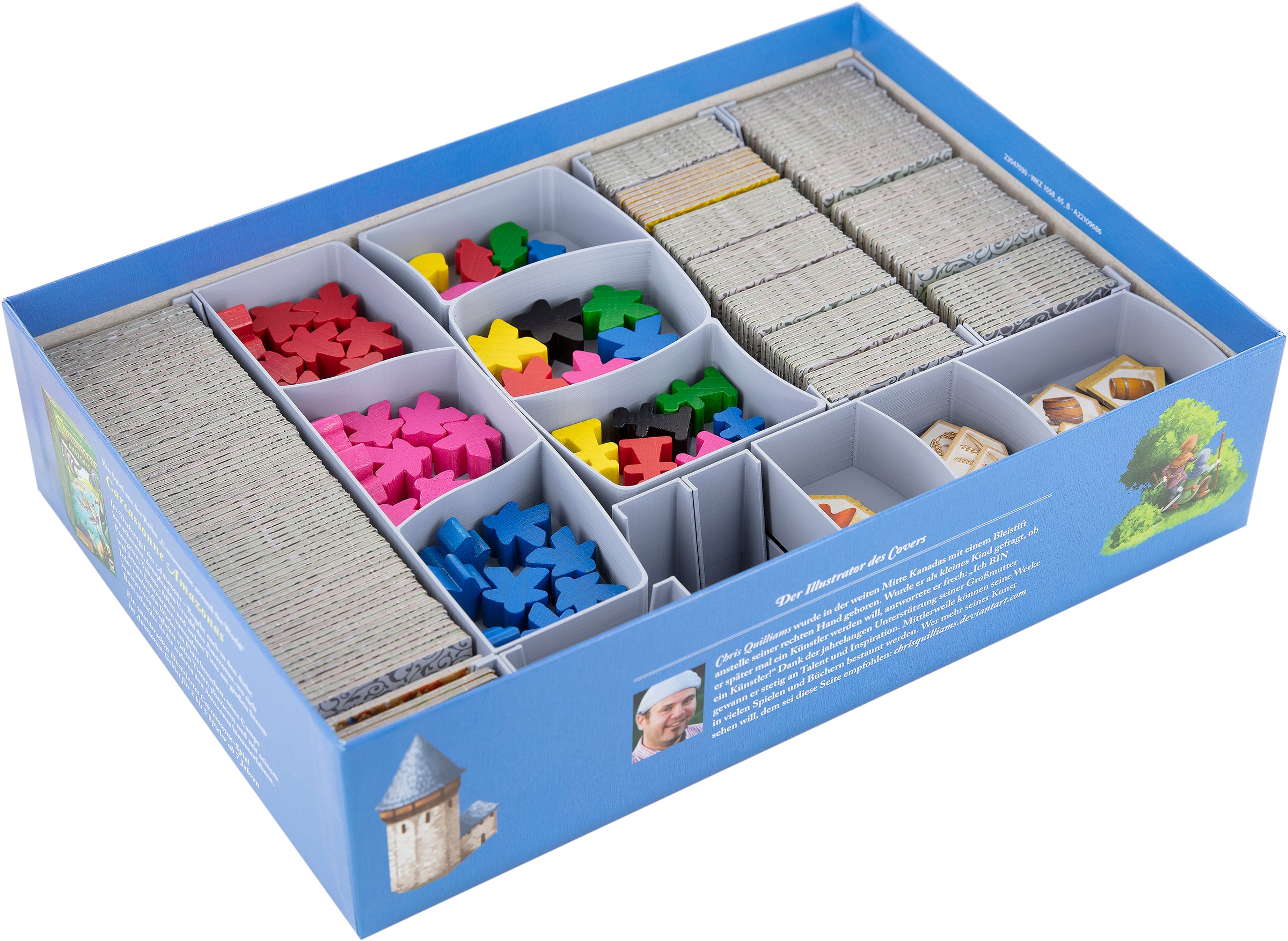 With this Feldherr Organizer for Carcassonne, you get a whole Big Box into the small core game box, and still - or precisely because of this - never lose track of everything.