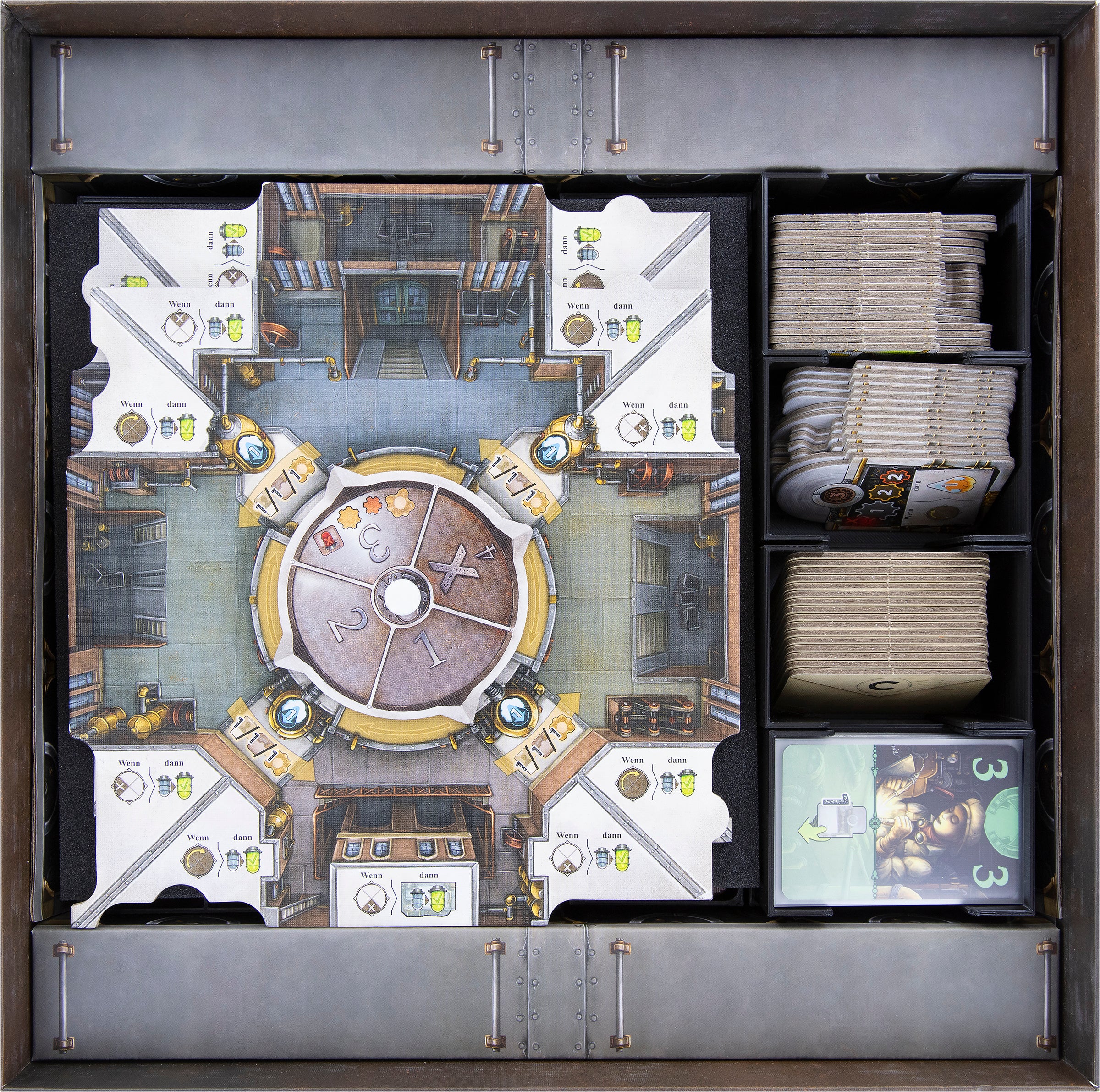 To prevent your game material from rusting while you're still sorting, we've taken care of the organization of your board game box. Nine stainless plastic inserts keep your workshop and board game box looking their best without having to take inventory beforehand. For a quick game start, you take the individual trays out of the box and place them on the tabletop, easily accessible for everyone. Everything is well sorted, and you can keep track of everything on the tabletop. After the game, cleaning up is quick and easy. Place the game material back into the trays and then stow them in the game box. eers