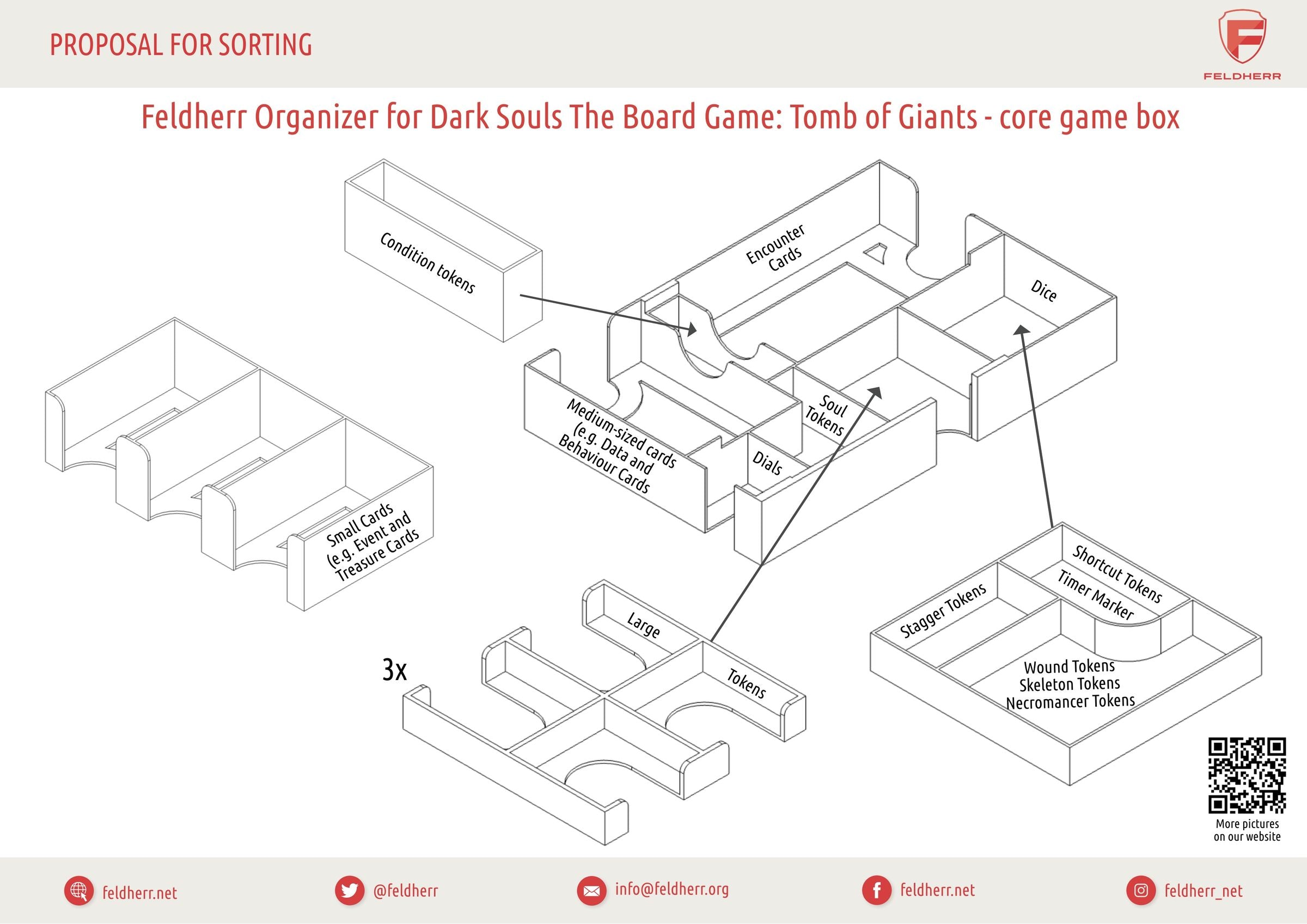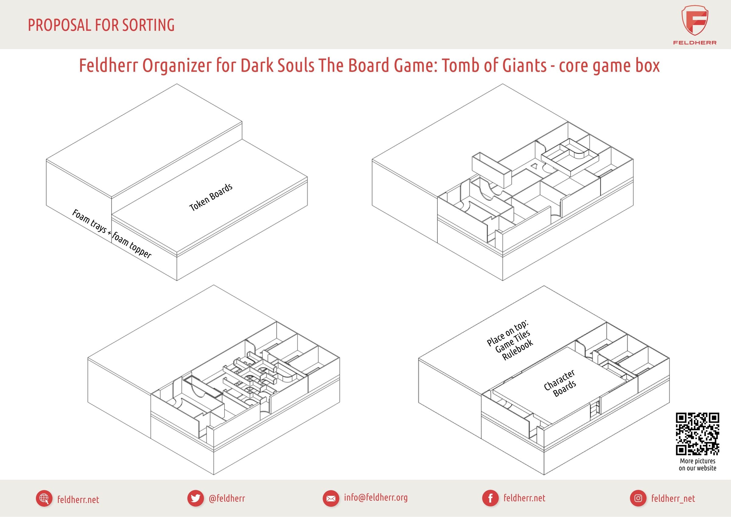 In the dark depths of the catacombs, a secret path leads you into the darkness. There, in the lightless Tomb of Giants, awaits the Gravelord, Nito. To ensure your game character doesn’t crumble into pieces and you can effortlessly find your way among miniatures and tokens, we support you with this Feldherr foam set with Organizer.