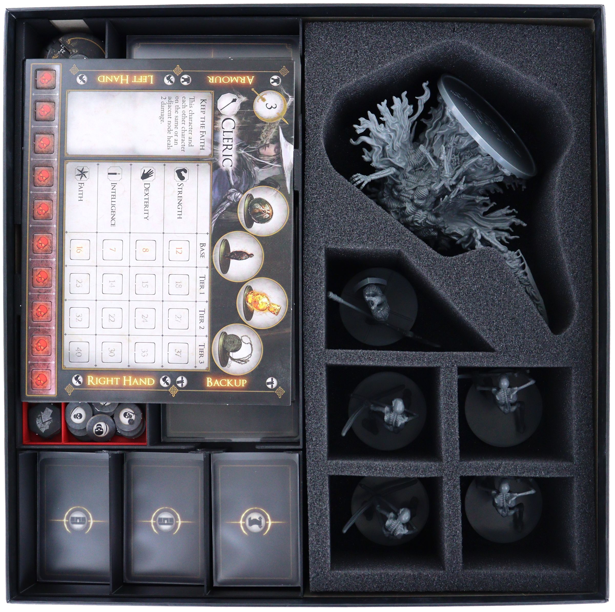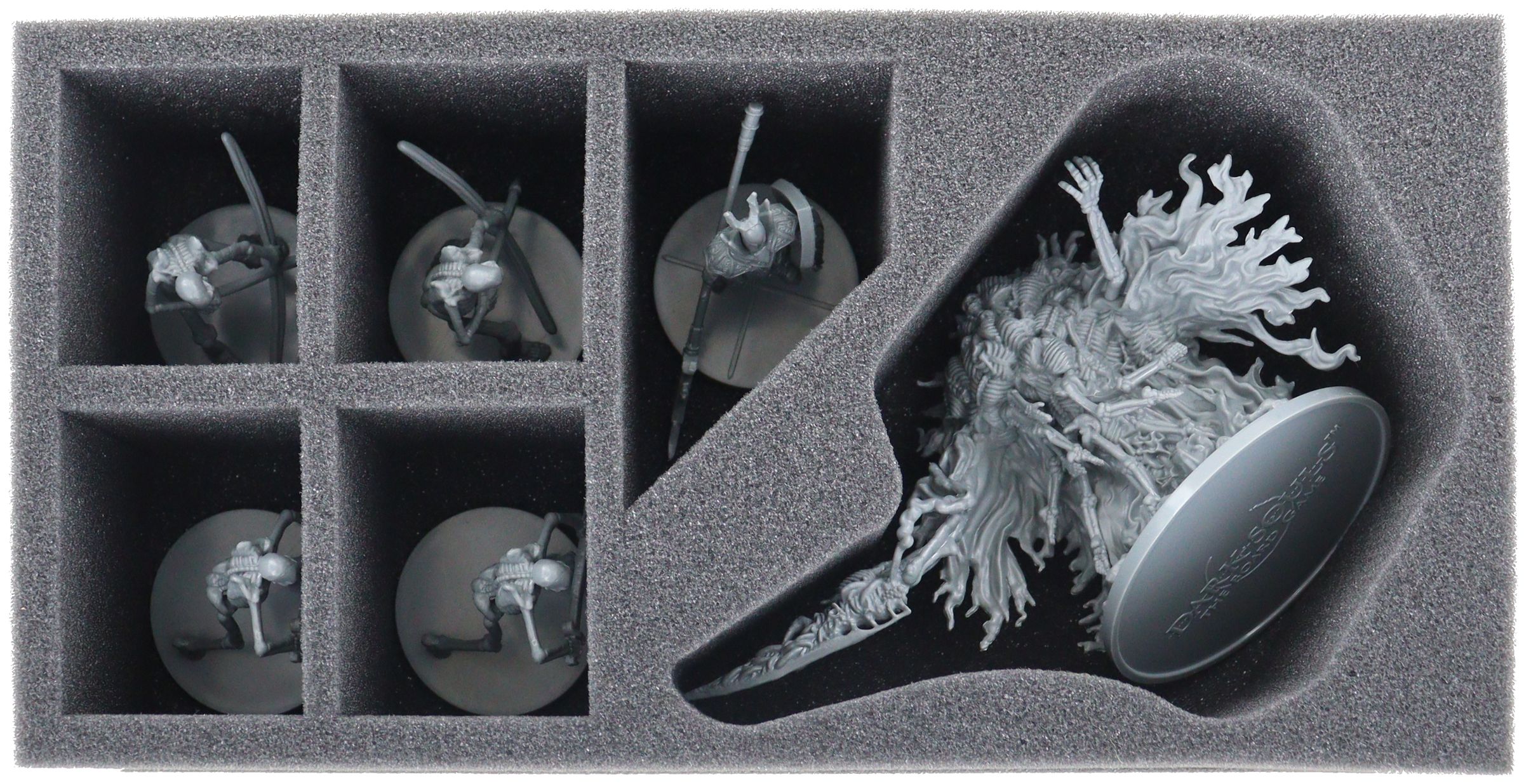 - 1 foam tray with six compartments for Gravelord Nito, Black Knight, Giant Skeleton Soldier, Giant Skeleton Archer