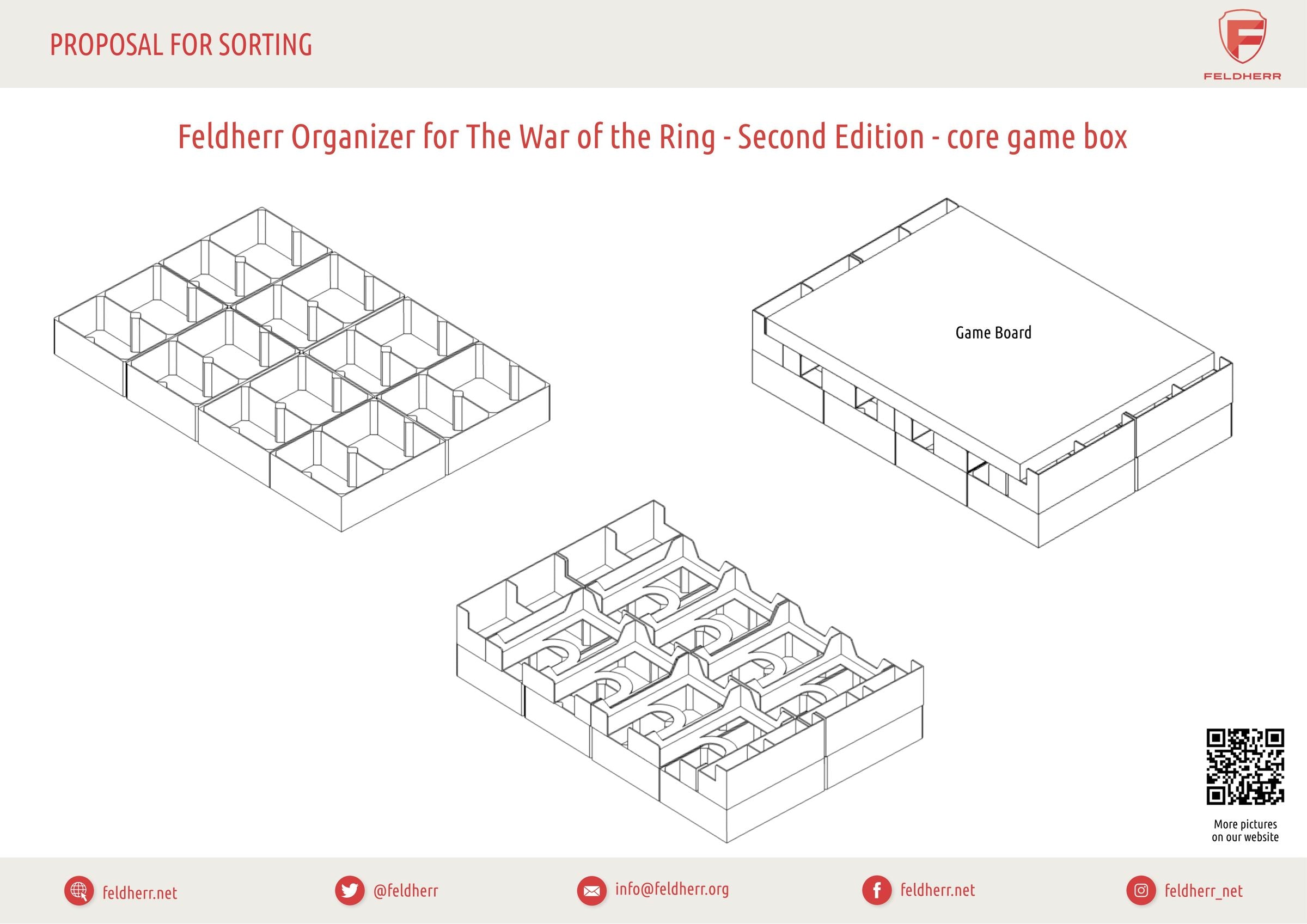 The core game of "The War of the Ring: Second Edition" already features countless game materials and cards and over 200 plastic miniatures. The game gets over 50 more miniatures and even more game material with the two expansions. With so many figures and game material, it is easy to lose track of everything. To remedy this, there is the matching Feldherr Organizer.