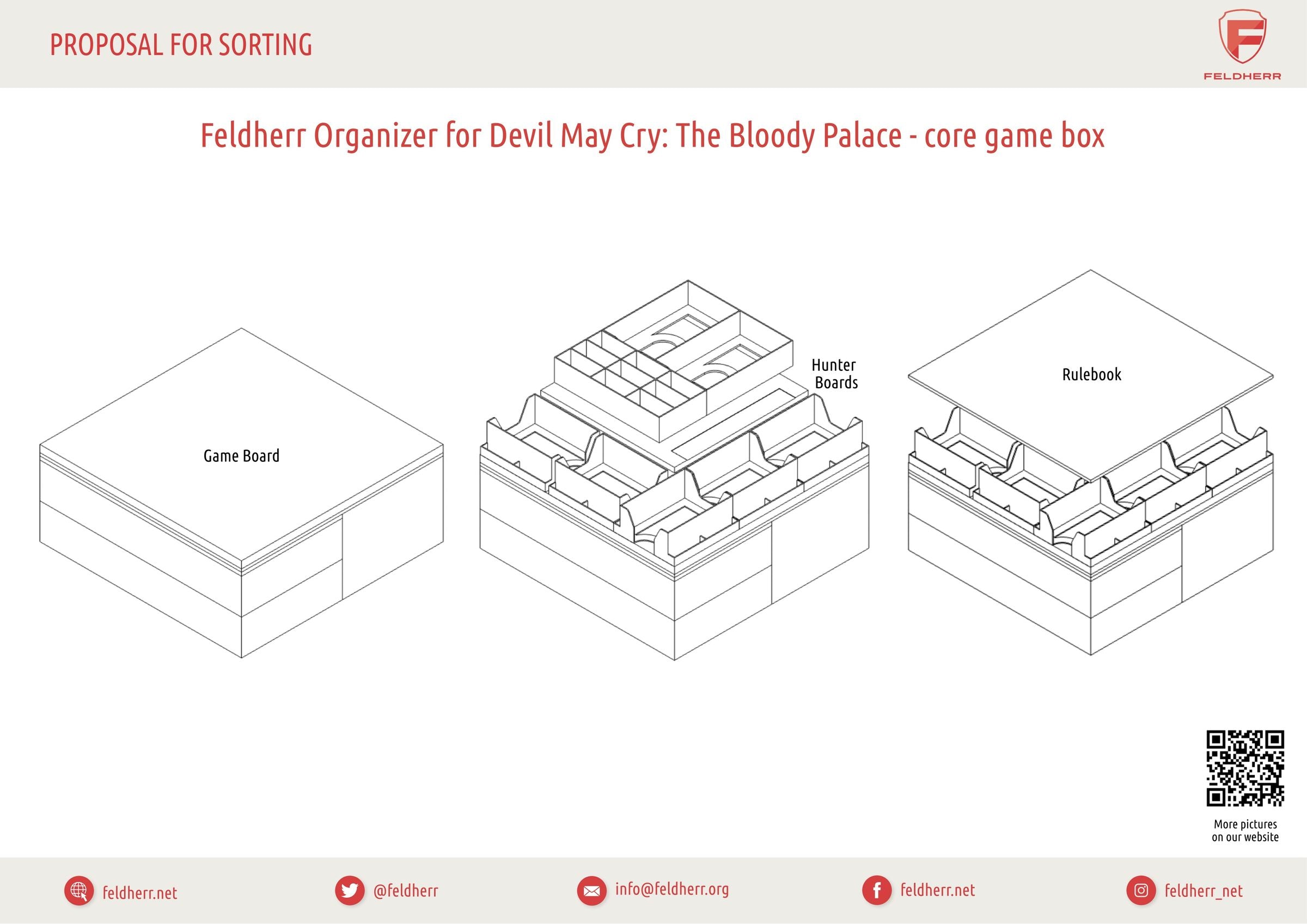 - The set fits neatly into the original board game box of the "Devil May Cry: The Bloody Palace" core game.