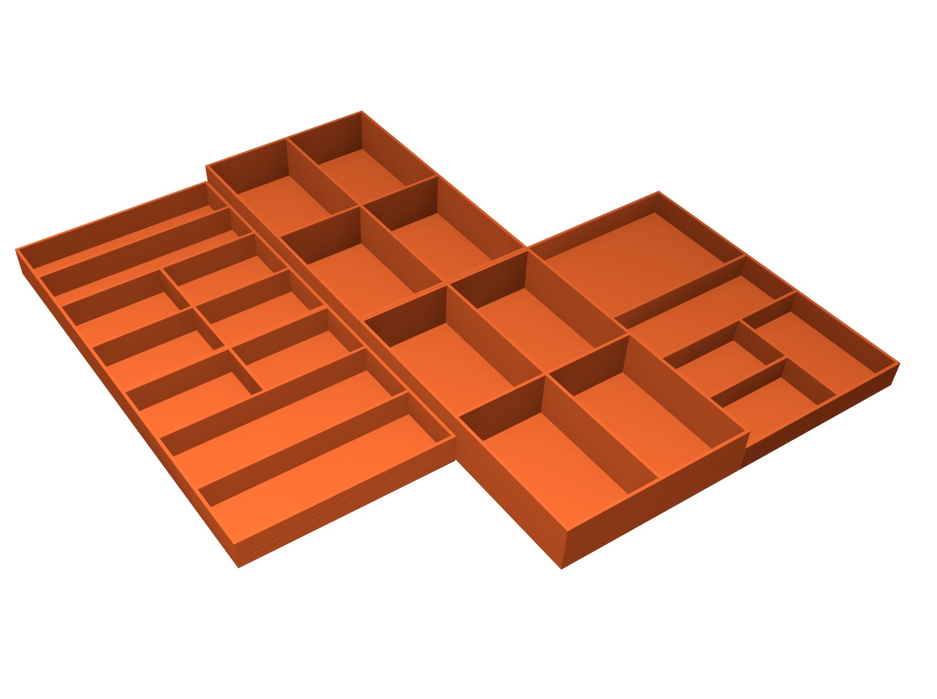 LEVA-HOFF consists of 10 trays which can all be removed from the box and freely arranged on the table.