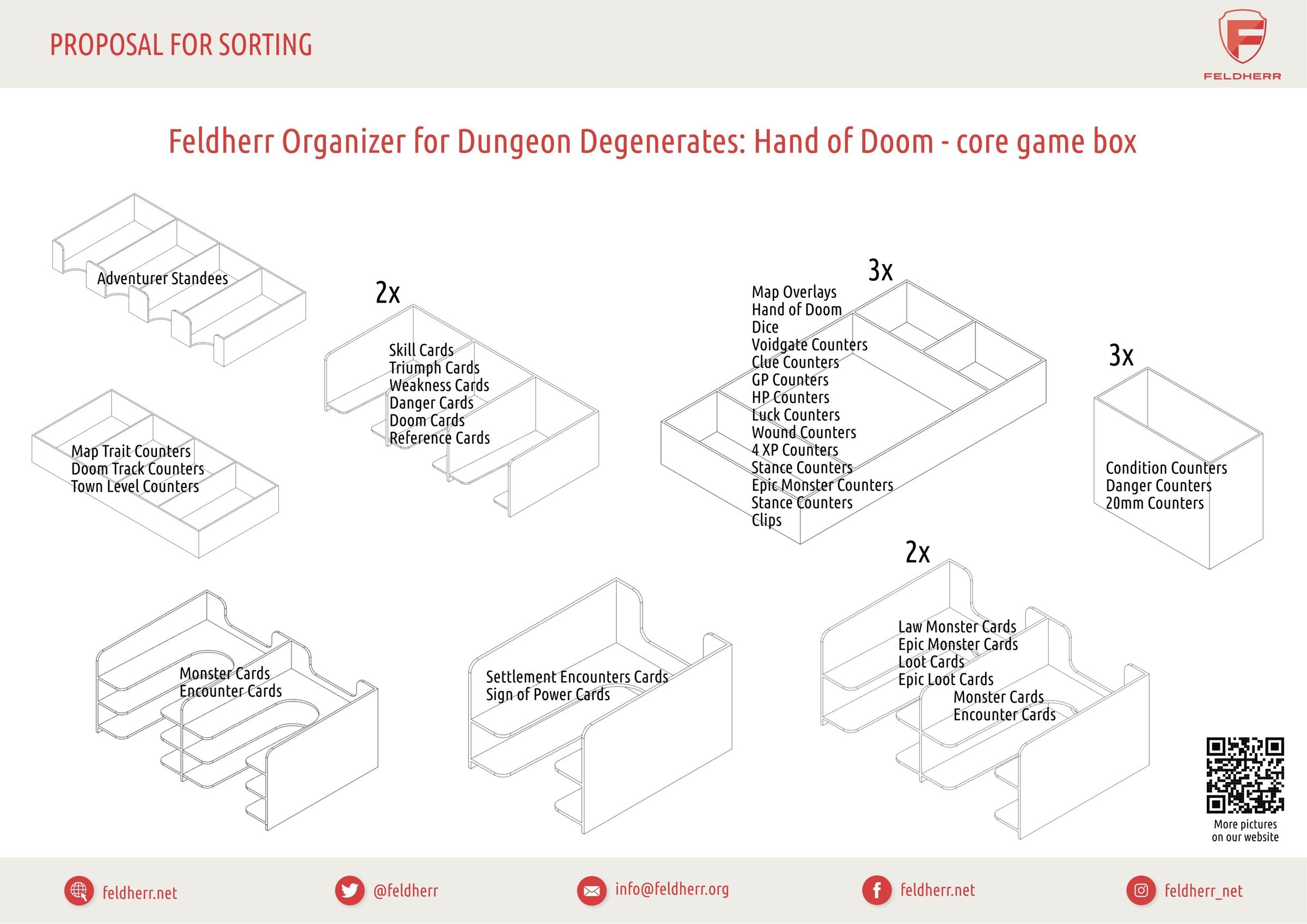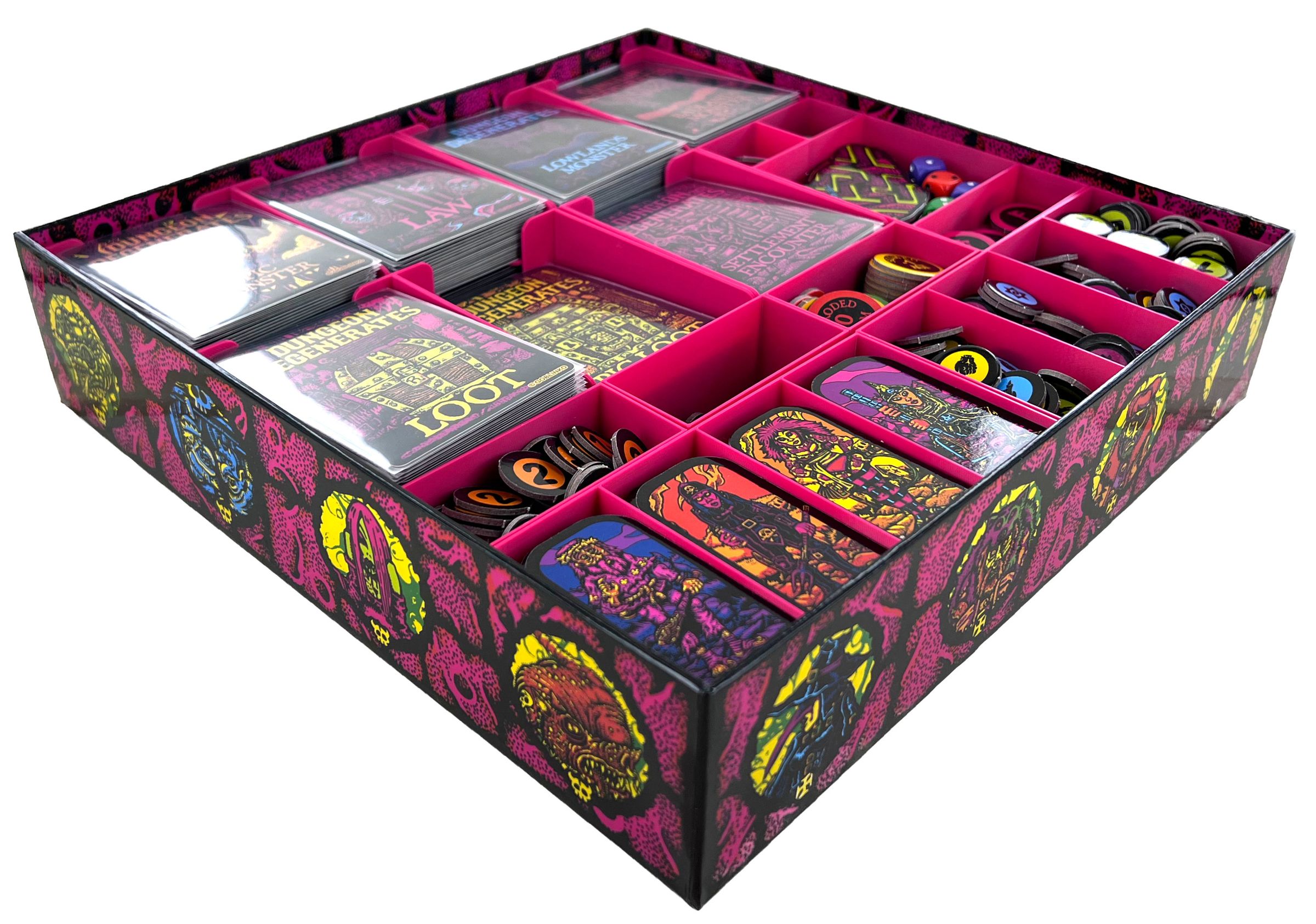 - The Organizer fits into the original board game box of the “Dungeon Degenerates: Hand of Doom” core game.