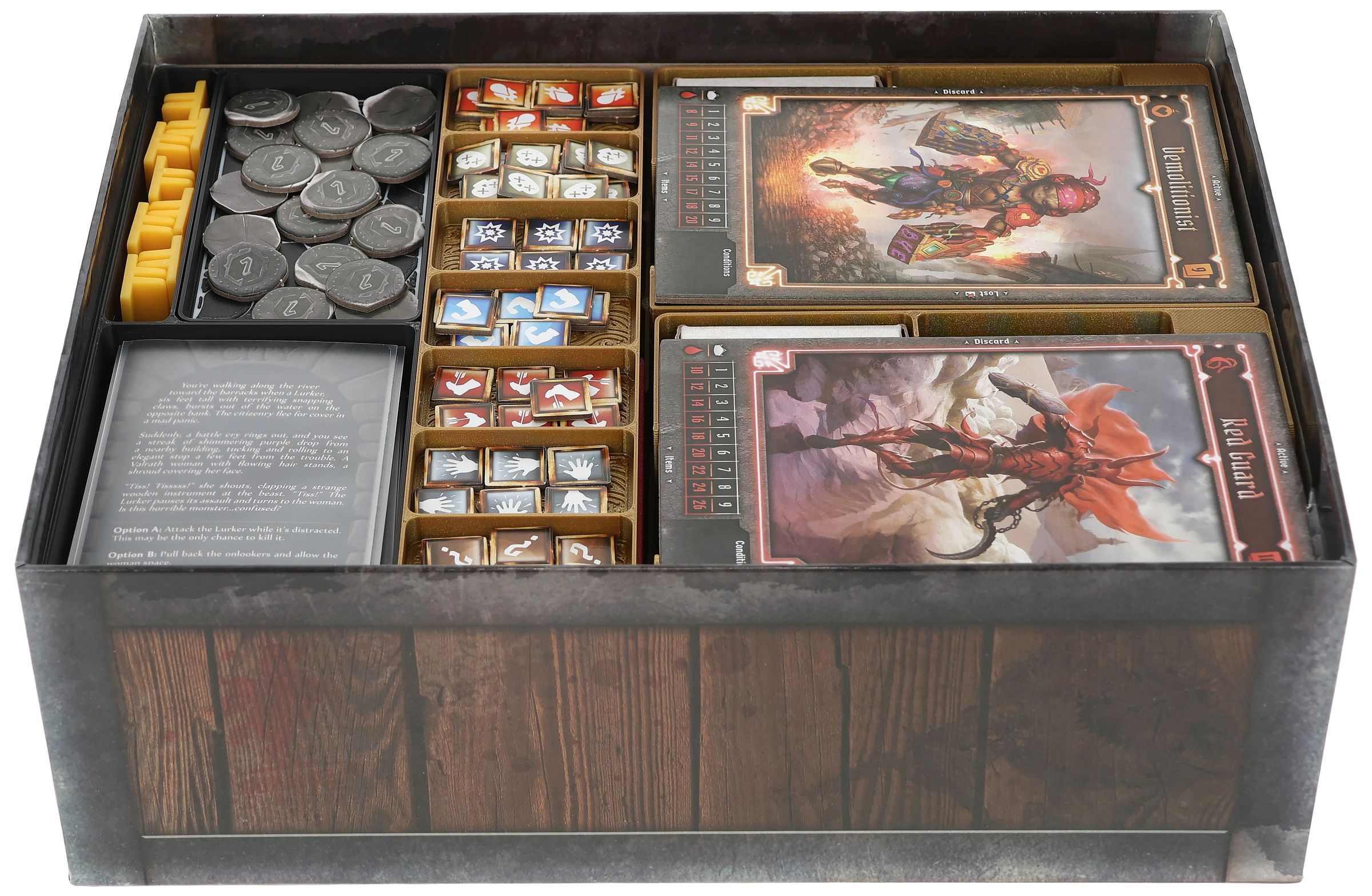 Gloomhaven: Jaws of the Lion takes you into the dark and dangerous corners of a fantastic world full of monsters, secrets and challenges. To make sure you survive and can concentrate fully on your missions, our Feldherr Organizer keeps the core box tidy and brings overview and efficiency to your gaming table.