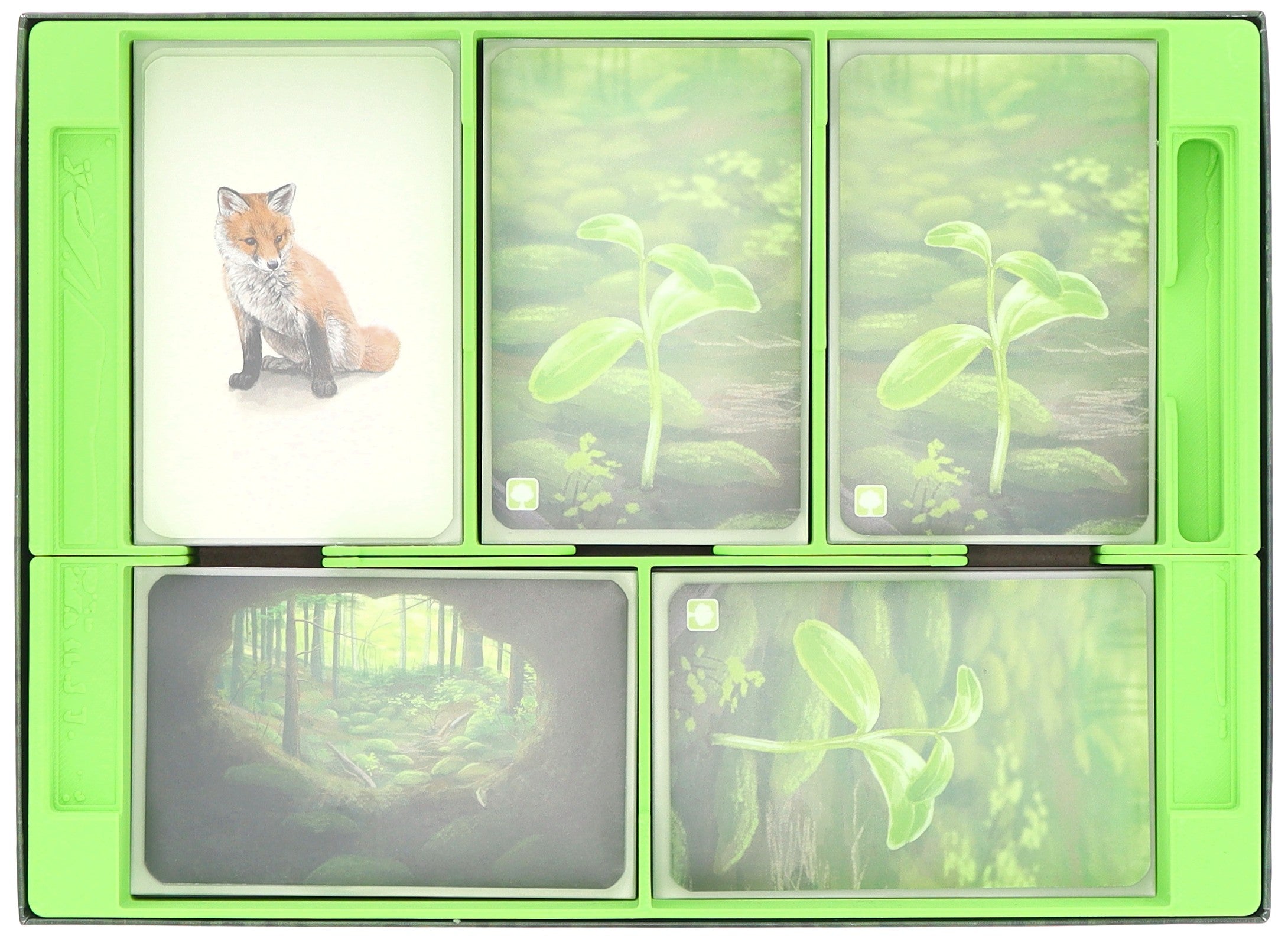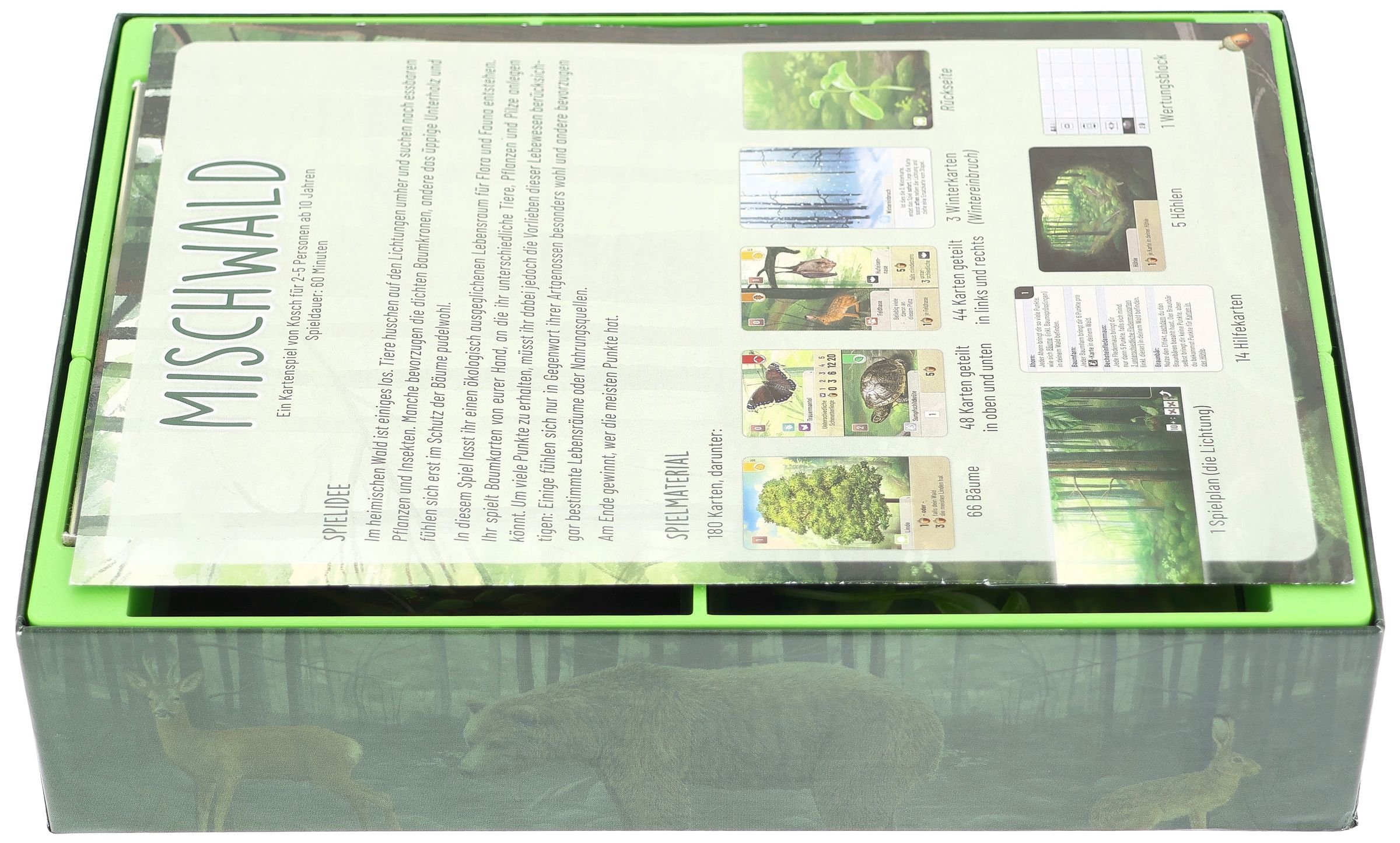 - Compartments for up to 295 sleeved or 590 unsleeved cards offer generous storage space - also for future expansions such as “Woodland Edge”.
