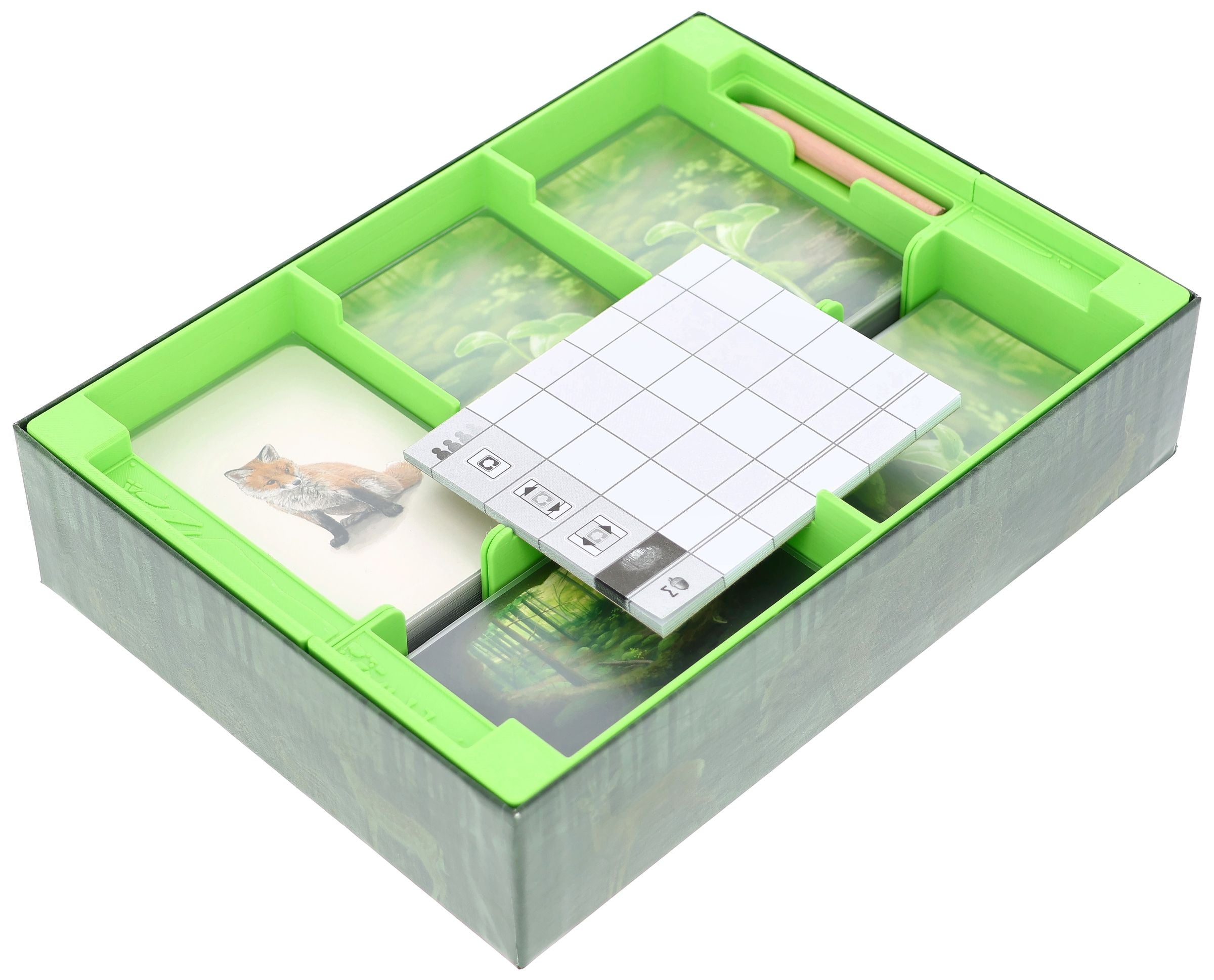 With this Feldherr sorter insert for the Forest Shuffle core game box, you can keep not only the base game but also expansions such as Alpine and Woodland Edge perfectly organized in the box. So you can relax and enjoy your game night.