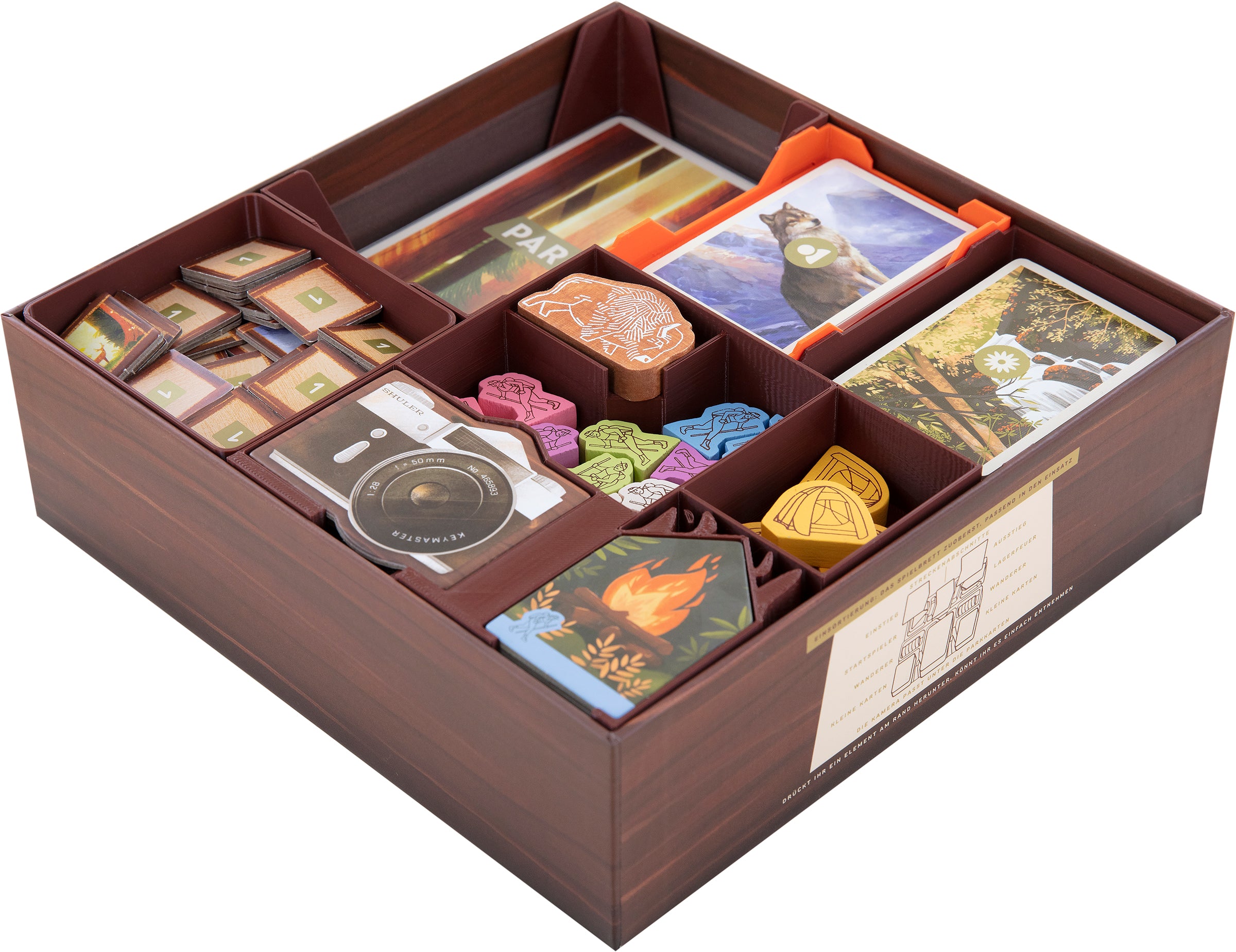 The Set offers everything you need. Your game material is neatly sorted and always within reach so you can concentrate fully on the game. Beautiful to look at and easy to use - what more could you want? Of course, there is also space for the two expansions, “Wildlife” and “Nightfall.”