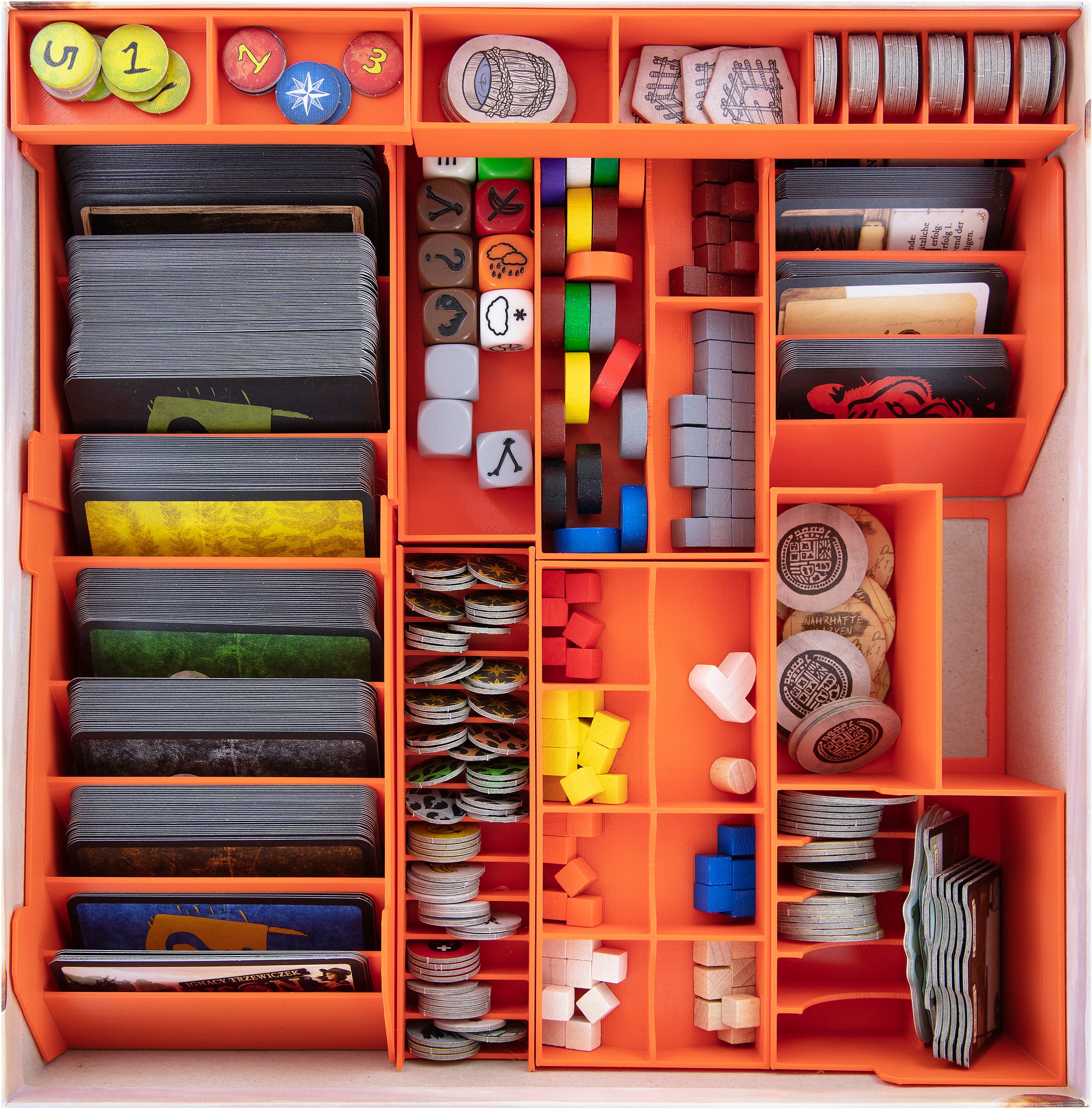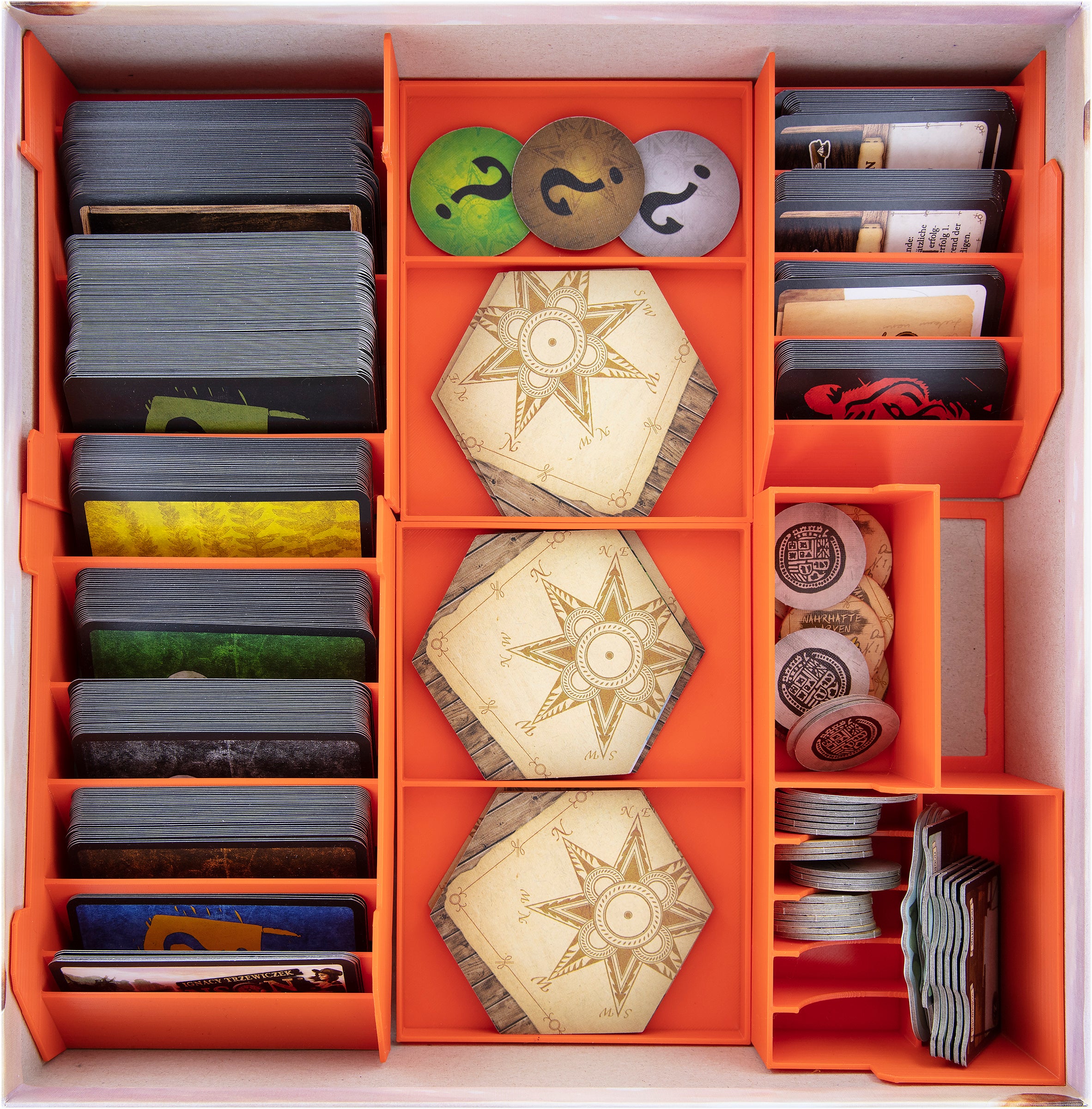 - The insert made of sturdy plastic offers you space for all markers, cards, and tokens from the basic box and the expansion "The Voyage of the Beagle".