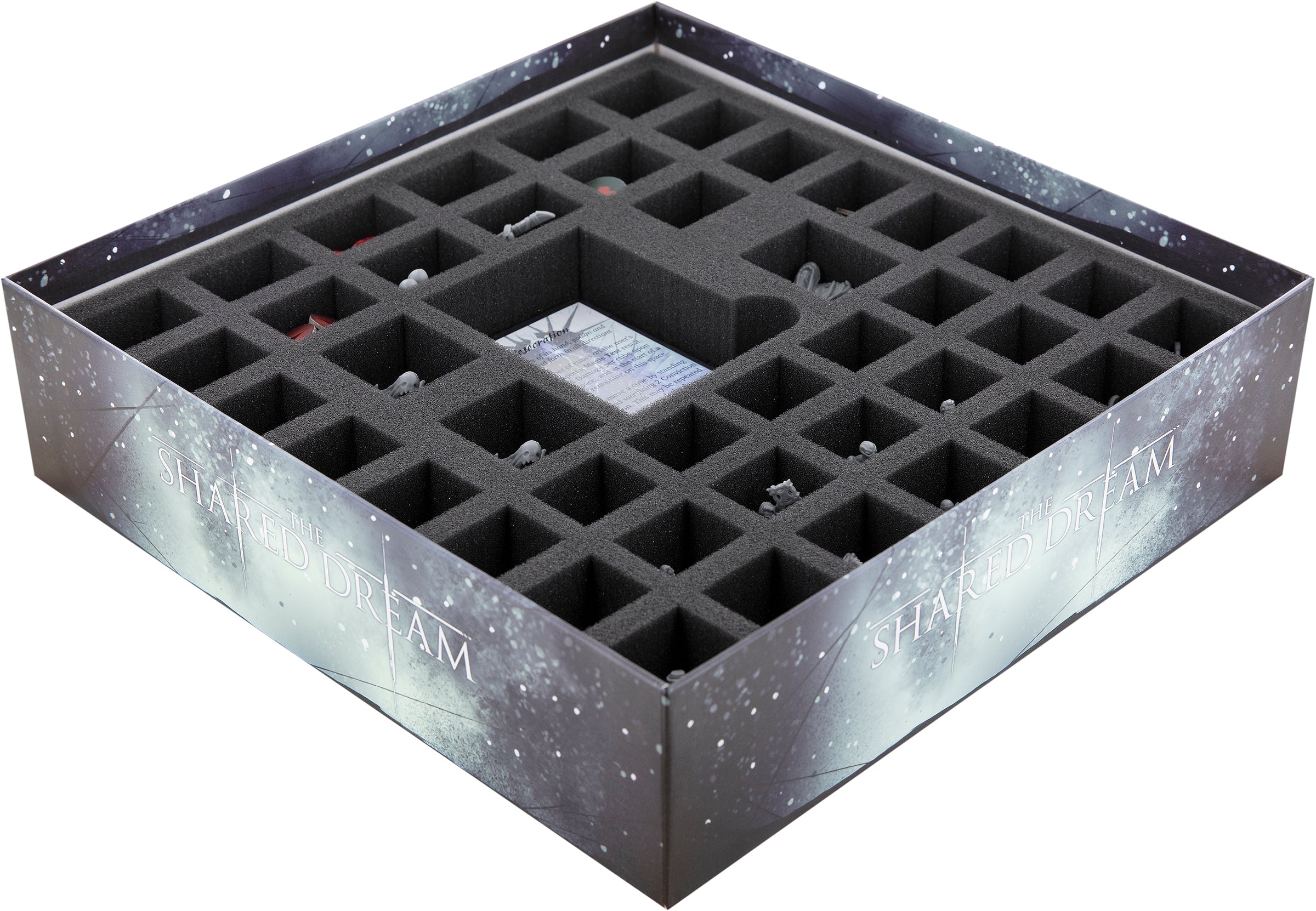 We share with you the dream that no miniature has to suffer from broken limbs and your game material stays neatly sorted. To make this dream a reality, there is the matching Feldherr Organizer Set for the original board game box of "The Shared Dream". It allows you to safely and neatly transport all the contents of "The Shared Dream" core game.