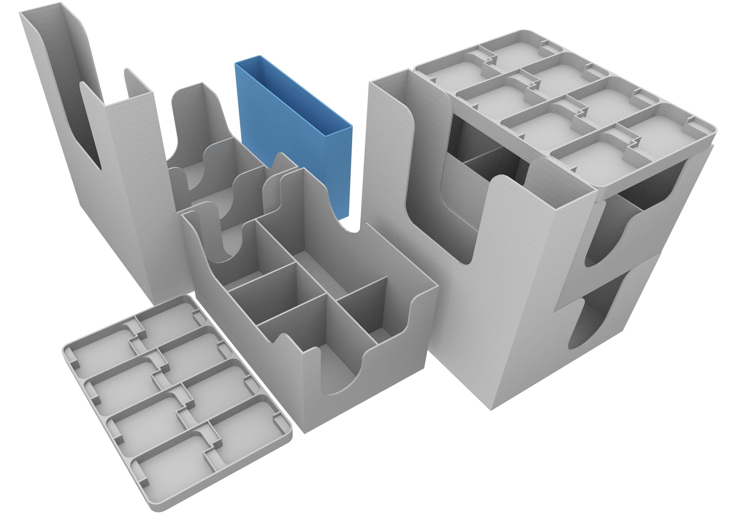 - Provides space for all unlocked content from the Large Tuck Boxes. The set replaces the Large Tuck Boxes in the board game box and ensures neatly sorted game materials.