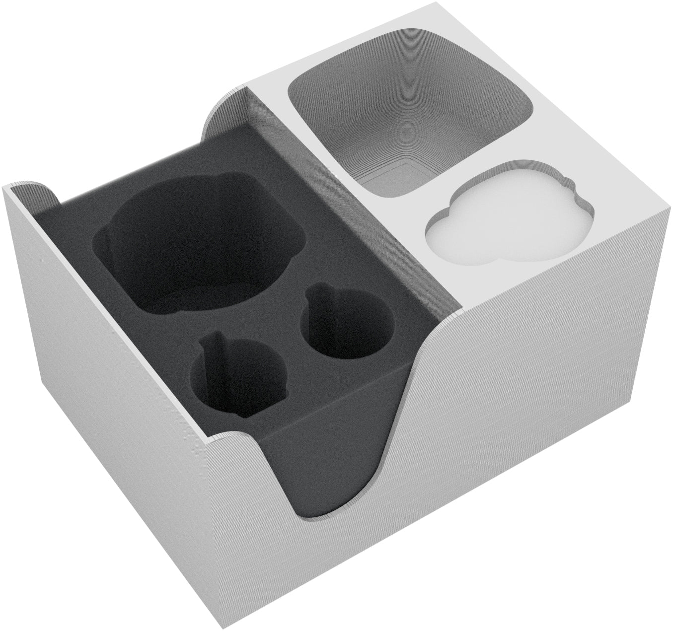 The Organizer Insert has the dimensions: 125 mm x 93 mm x 71 mm height