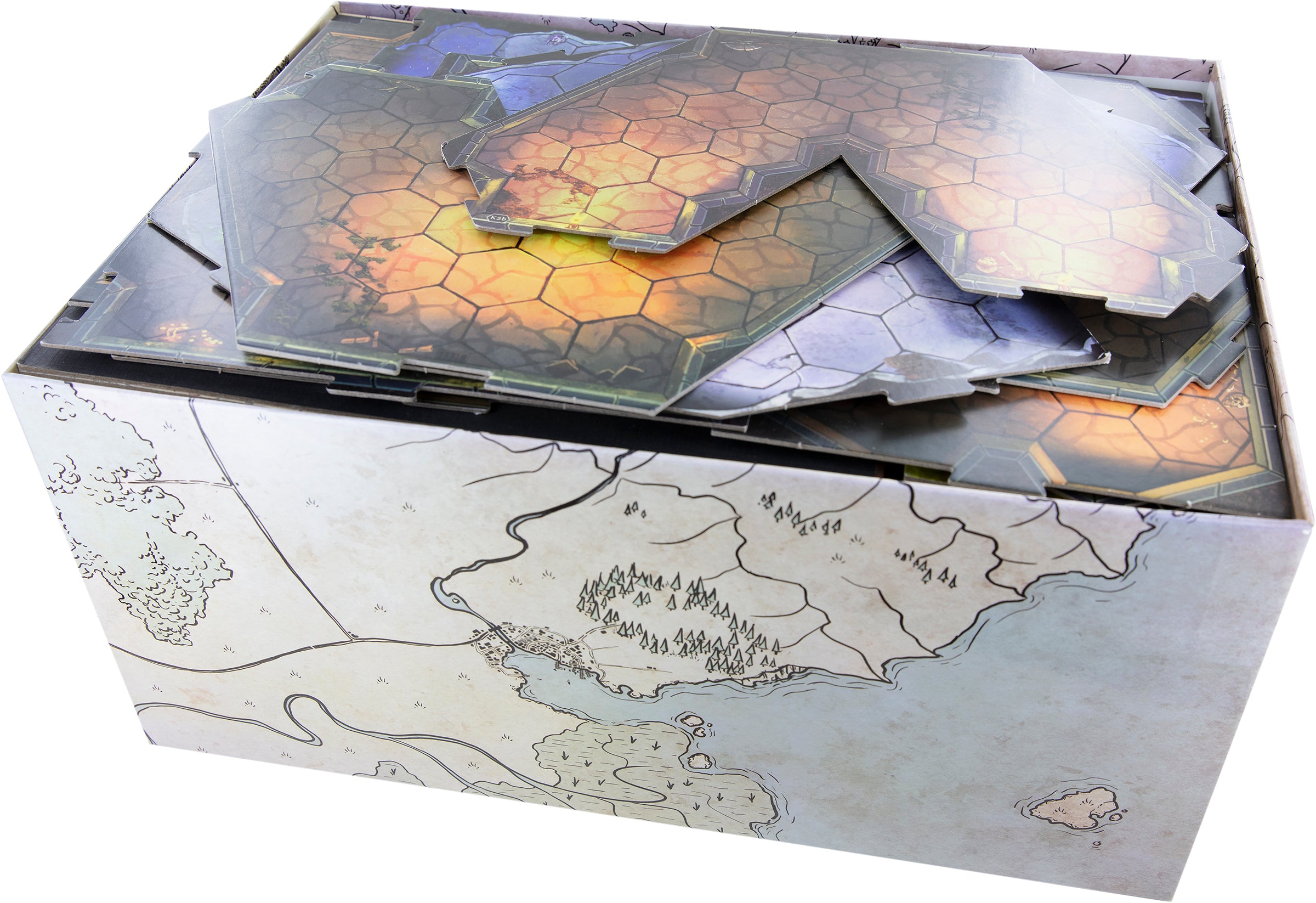 - The set fits into the original "Gloomhaven" board game box from Cephalofair Games.