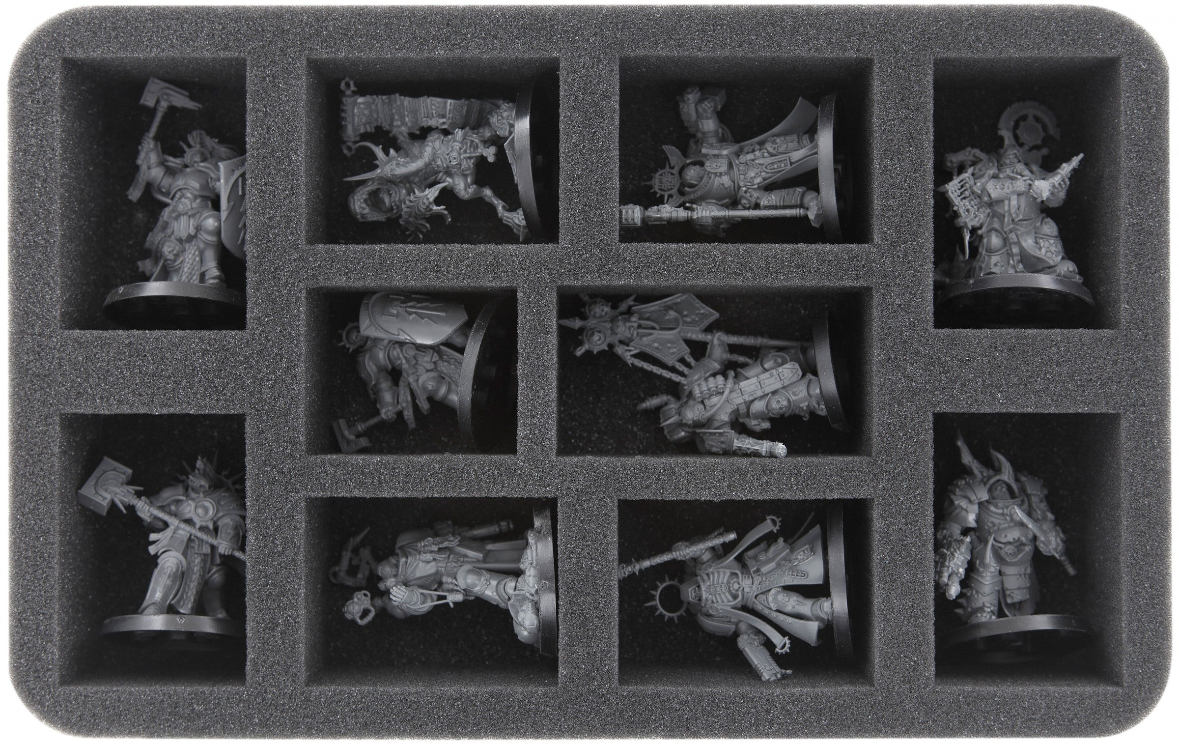 • 1 Half-Size foam tray with 10 compartments for e.g. Einhyr Champion, Ûthar the Destined, Kâhl, Einhyr Hearthguard (HS050A111)