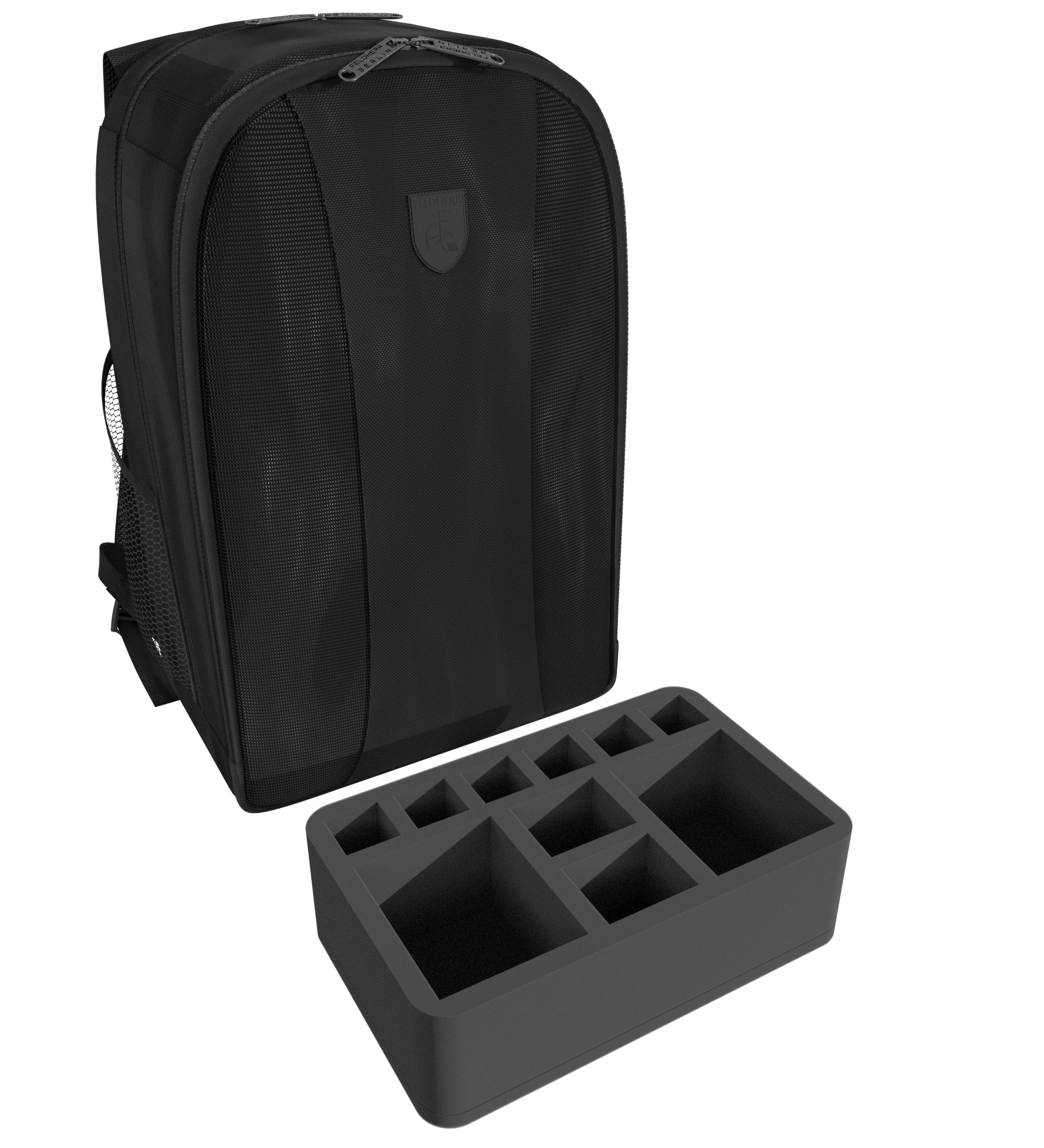 This Backpack, filled with matching Feldherr foam trays, holds up to 76 miniatures of your crews + cards and game accessories.