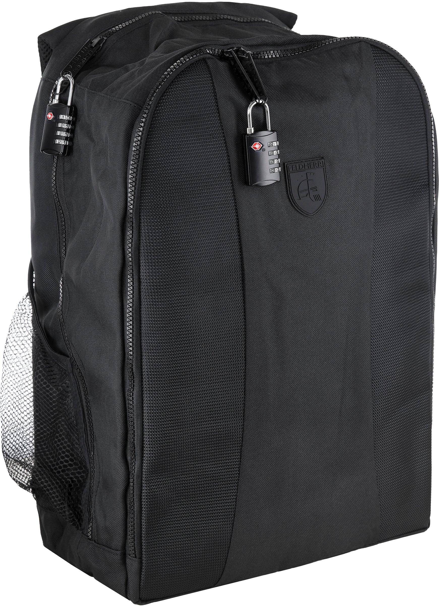 Light but durable materials, breathable mesh padding and a lot of cleverly thought-out storage space make this backpack the ideal companion, not only for game meetings or the next tournament. Whether for hobby, school or work, our Feldherr BACKPACK always cuts a good figure - the optimum combination of comfort and protection. It can also be locked and connected with an optional padlock.