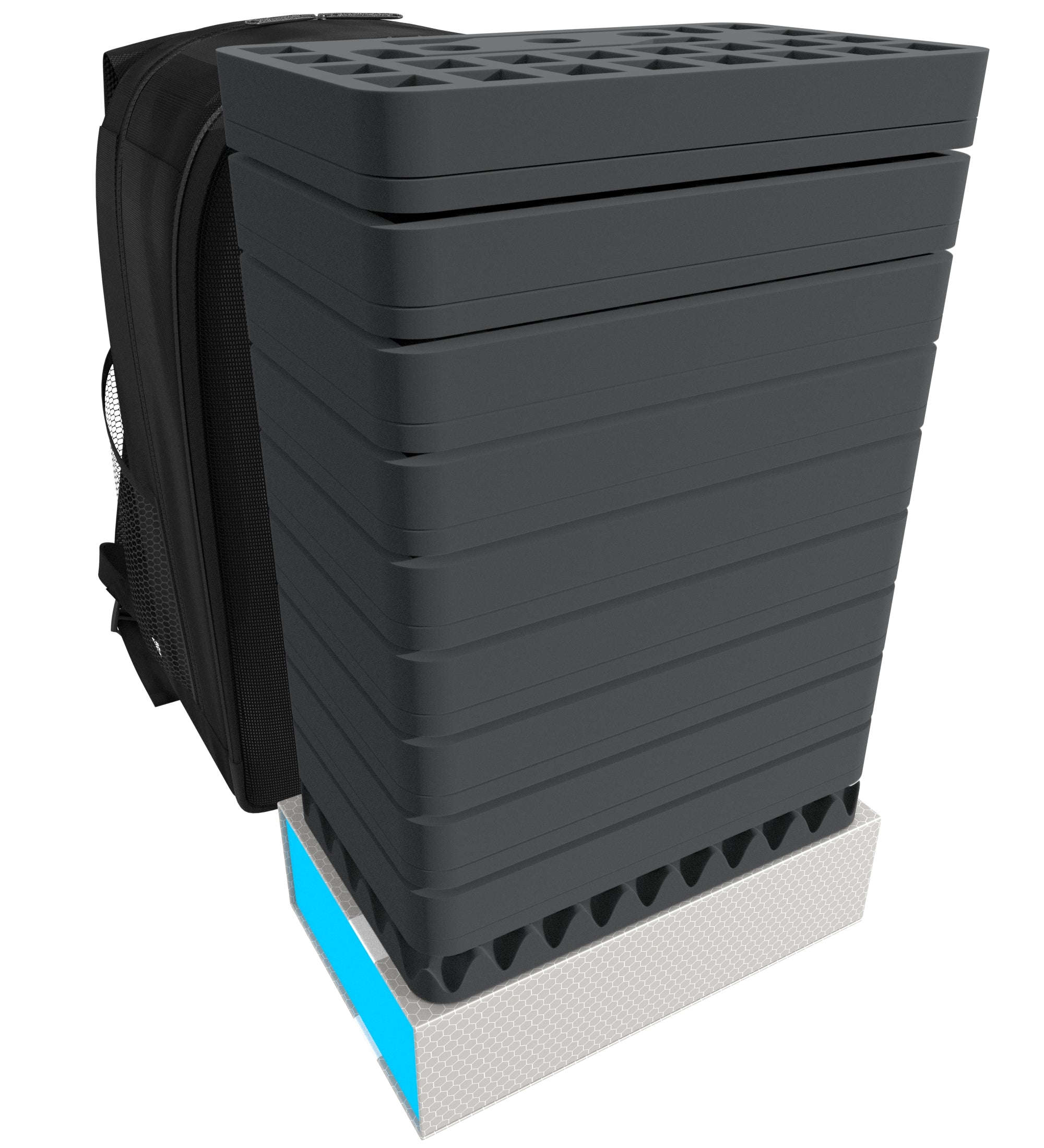 Of course, the magnetic box and the foam trays fit exactly into the sturdy backpack. The backpack is made of light-weight yet durable materials and features a breathable mesh-padding. To make loading and unloading easier, the zipper opens wide to three sides. Thereby, the bag can be opened almost completely.