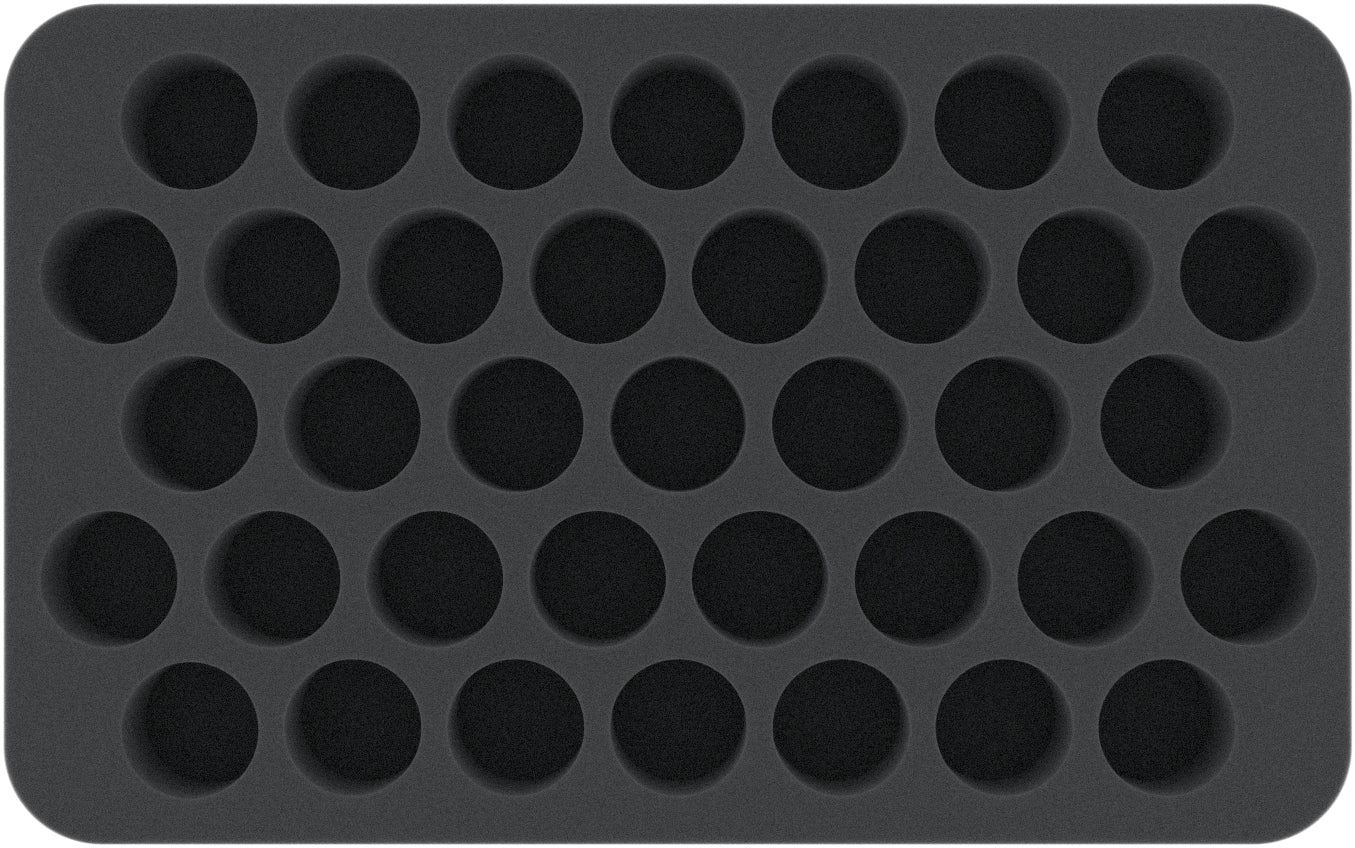 - Each of the 37 compartments has a diameter of 28 mm and is 25 or 40 mm deep.
