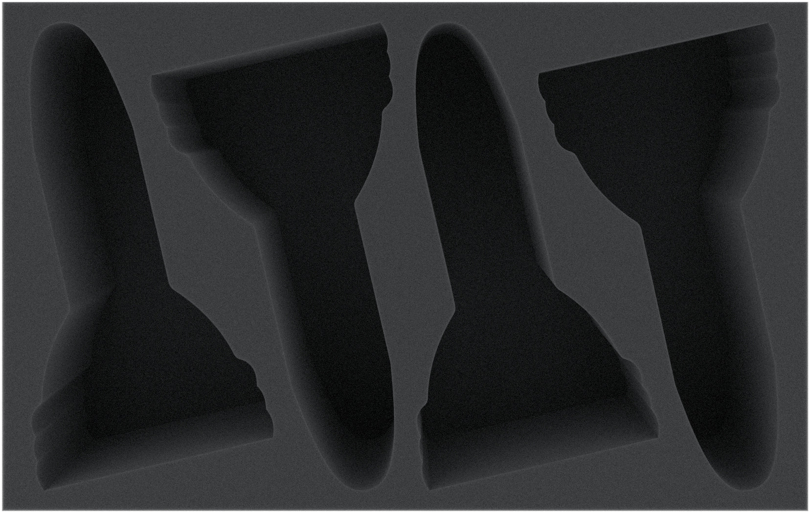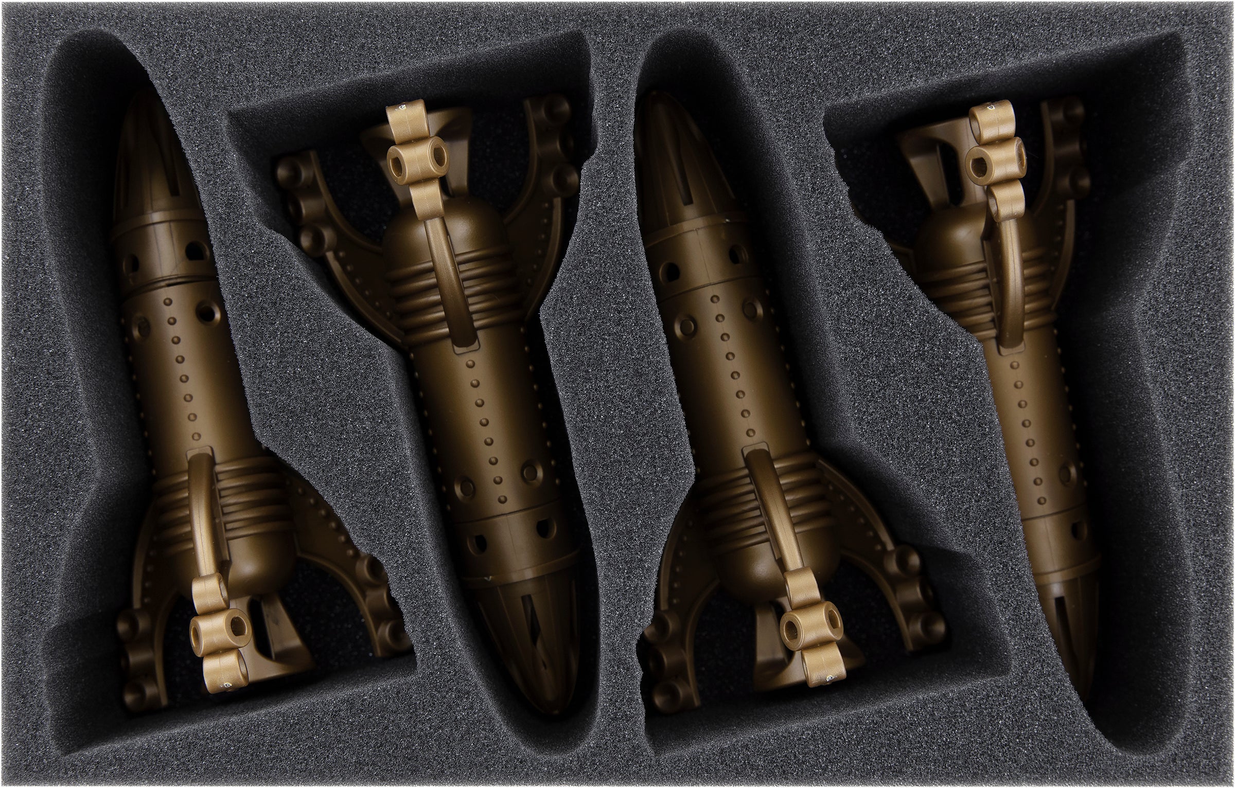 The four Motherships find a suitable hangar in the fifth insert. Four dimensionally accurate compartments ensure that the missiles remain firmly and securely in their storage location.