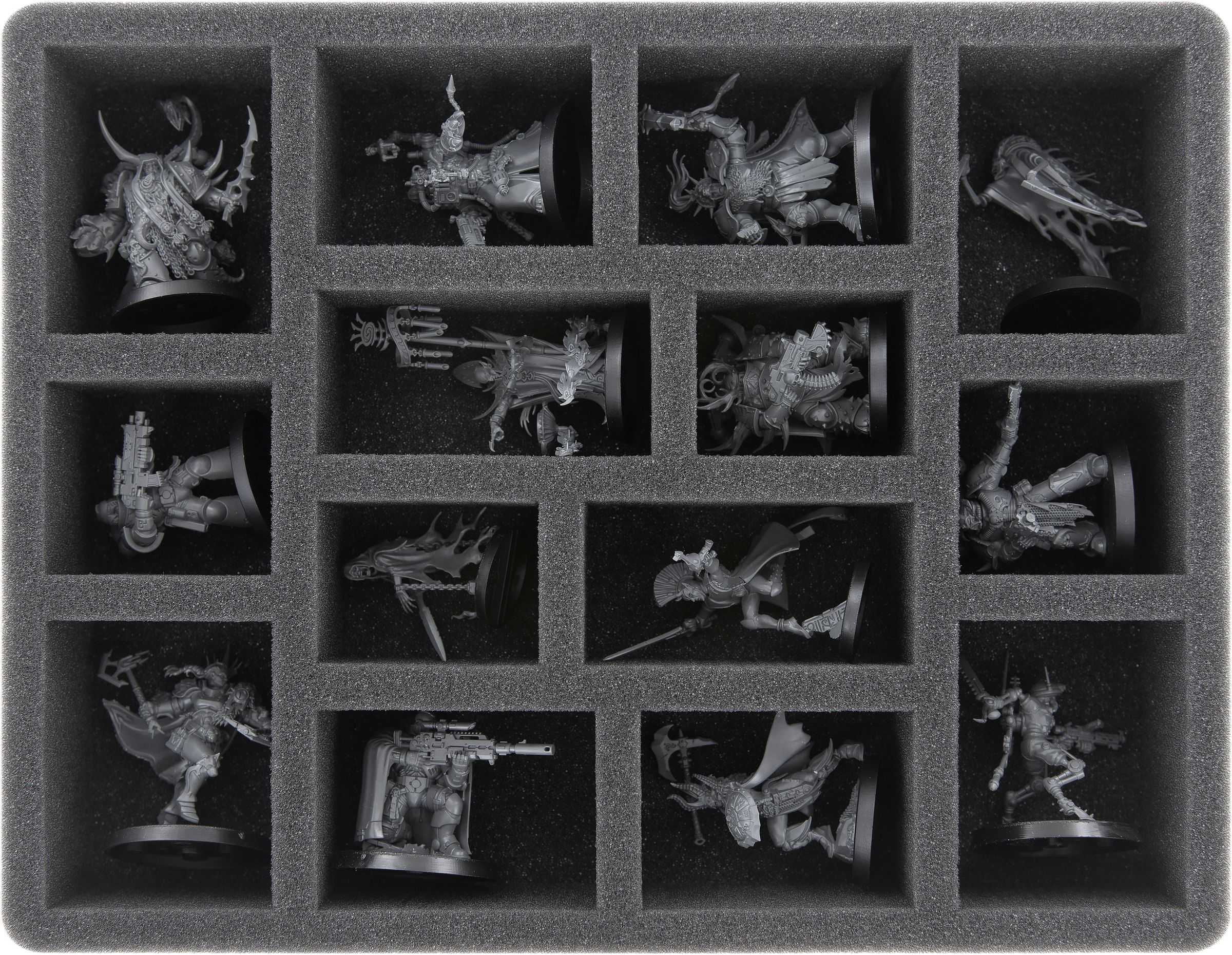 - 1 GWB-Size foam tray with 14 compartments for bulky infantry miniatures on 40 mm base (CRMEMH050BO).