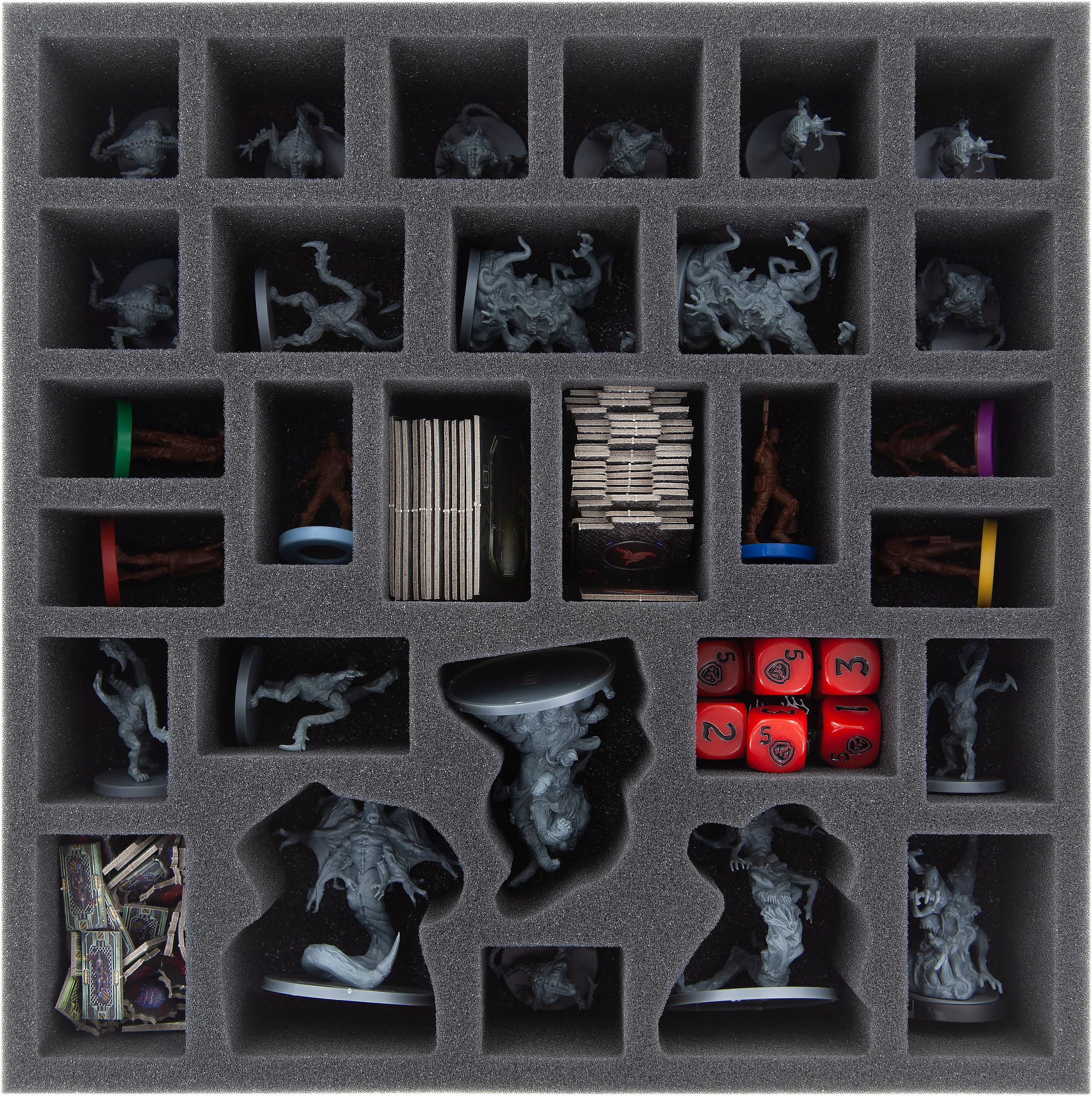 To make sure you don't descend into madness when trying to sort your „Deep Madness“ game material, Feldherr presents you a foam set which allows you to properly organize and reliably protect miniatures, cards and the small game material.