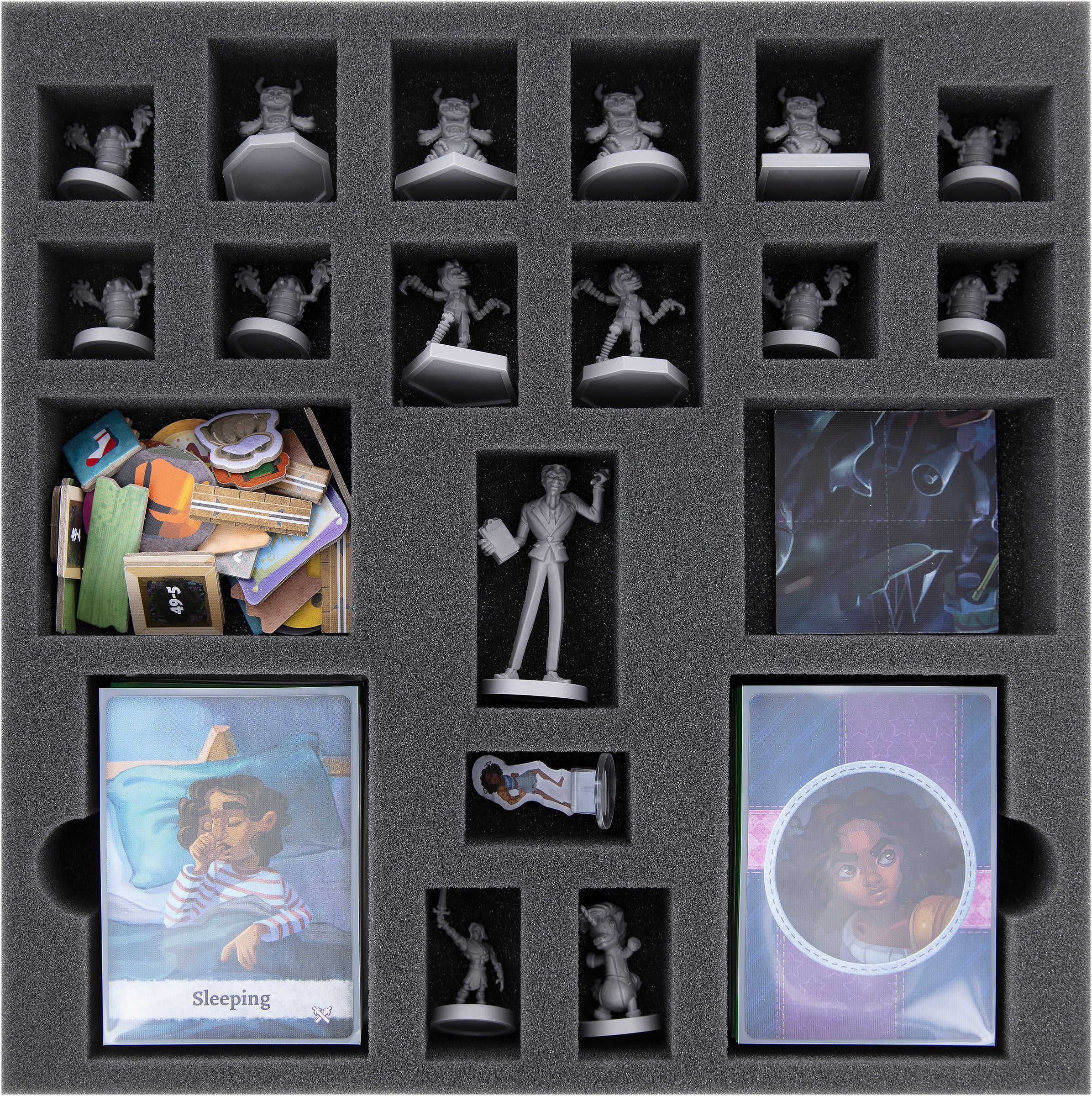 Of course, they do not have to face the dangers of the night alone, the old stuffed friends are back, too. Of course we also do our best again and provide you with this Feldherr foam set for a better protection and order in your game box.