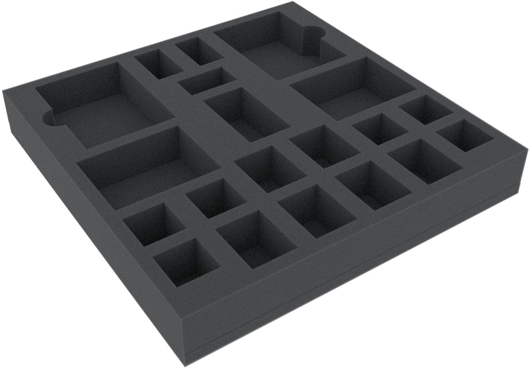 - The foam tray has the dimensions: 280 mm x 280 mm x 40 mm total height (30 mm usable height + 10 mm foam base)