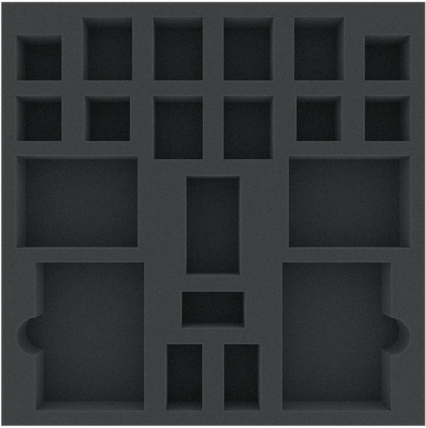All 15 hero and monster miniatures are each assigned an individually tailored compartment. The precise cut helps on the one hand when sorting and also ensures that nothing slips around when the box is on the move. The delicate parts of the figures are thus optimally protected from damage. If you have painted your models, you can be sure that the colors are still intact after transport.