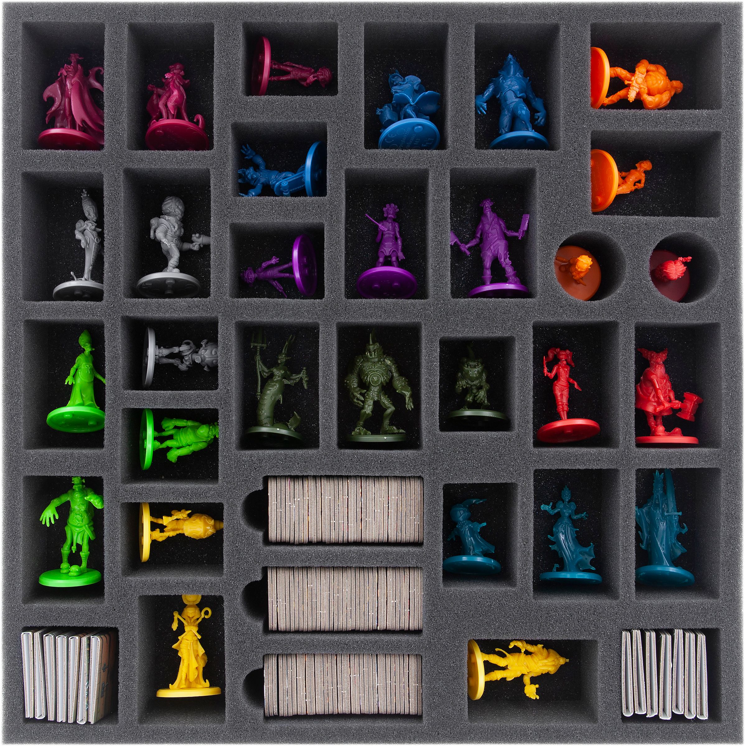 The second foam tray with 30 compartments gives the monster families a home. Here as well, the compartments are tailored precisely to each individual miniature.