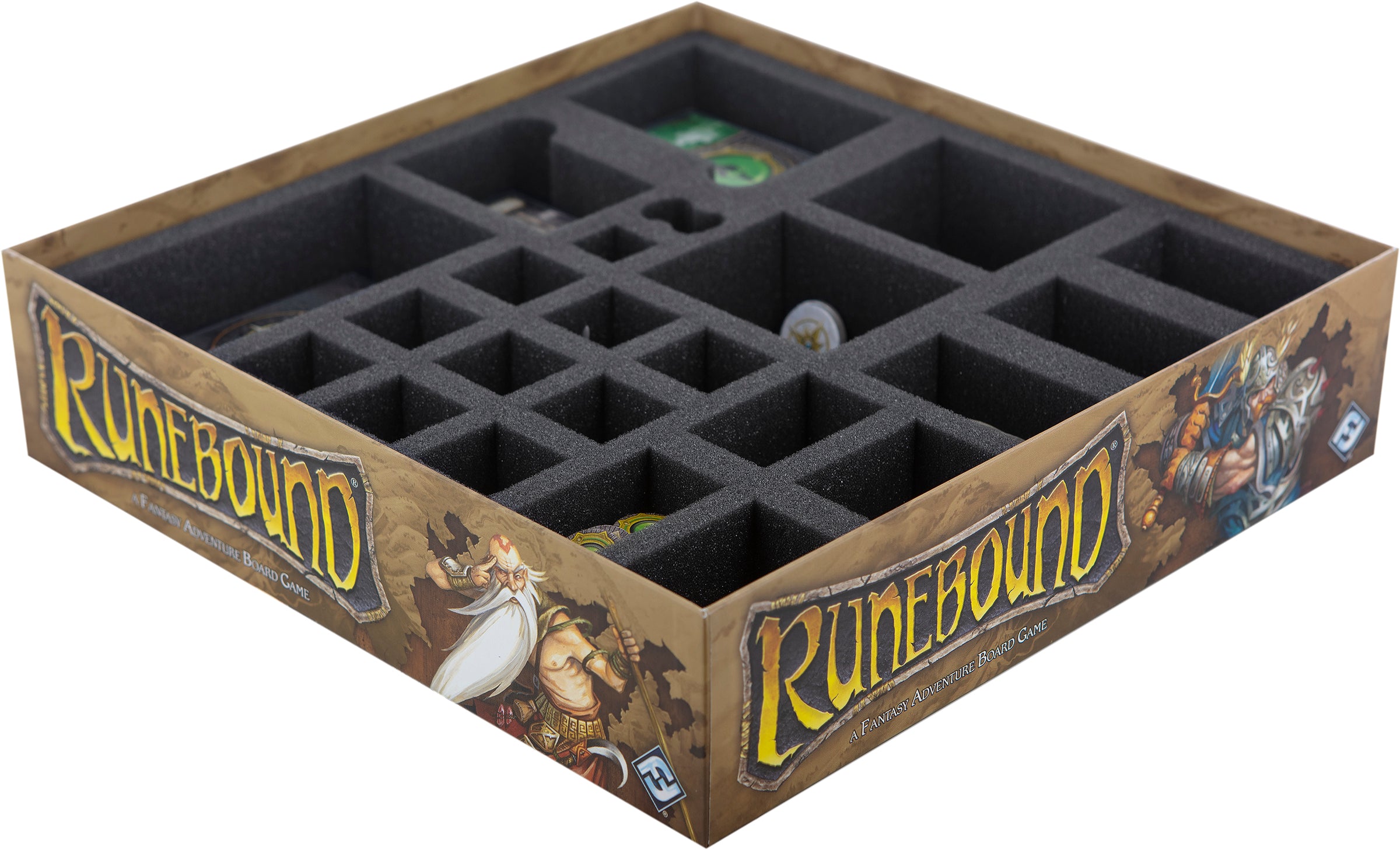 A matching foam topper completes the all-round care of your Runebound core box. On the topper you place the larger game components - the hero and scenario cards, game board and booklets.