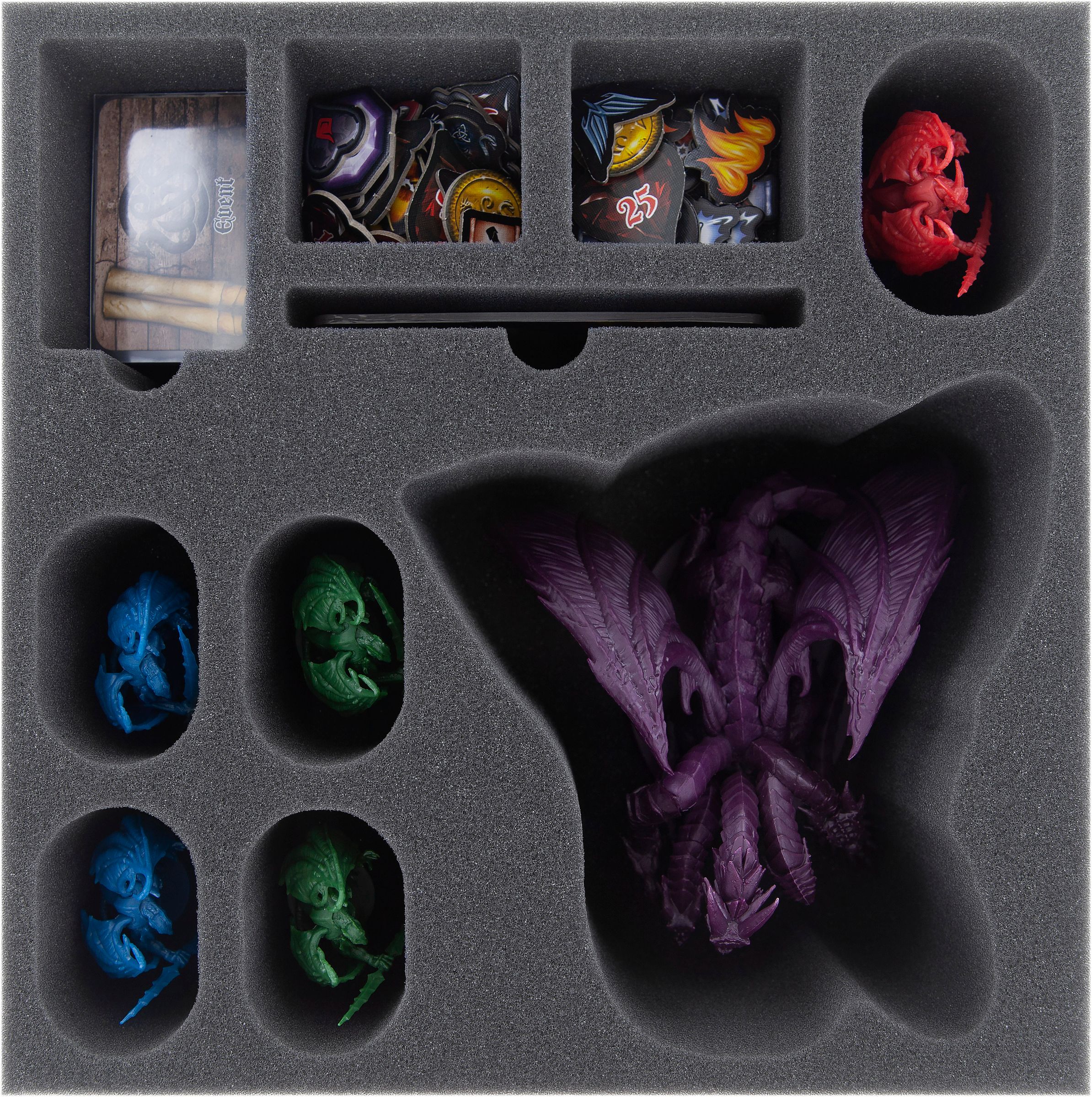 The large compartment of the insert is tailor-made for the figure of the Master Enemy. Thanks to the miniature-precise cut, the figure remains safely in place even when the box is transported. This not only protects Vastaryous' sensitive parts, such as wings and claws, from breakage, but also protects the colors of the painted figure from abrasion and scratches.