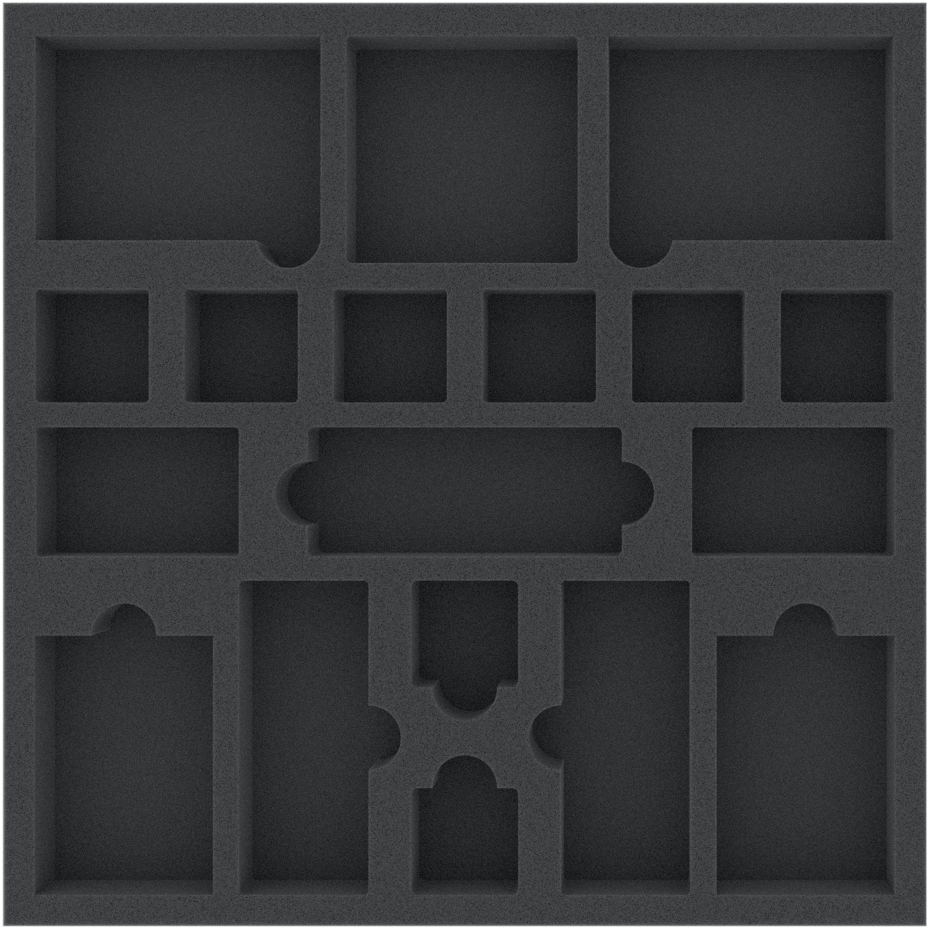 The two trays for the miniatures provide each of your models with their own compartments. Your heroes and monsters are thus kept from sliding around and thereby reliably protected against damage. The fine-pored foam prevents parts from breaking and paint from getting scratched.