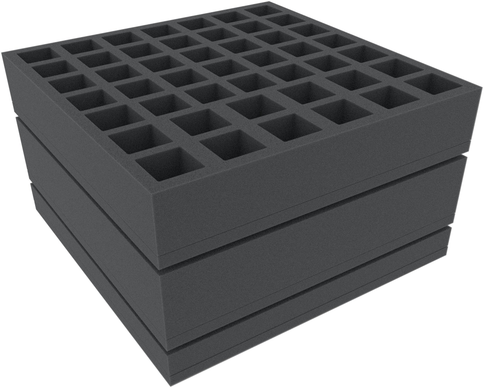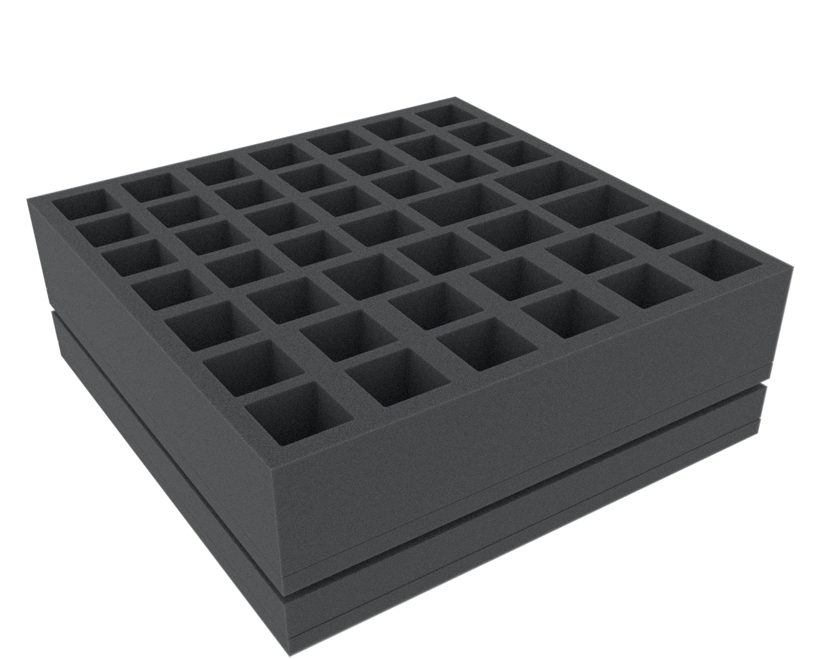 - AFMEKQ055BO: 285 mm x 285 mm x 55 mm total height (45 mm usable height + 10 mm foam base).