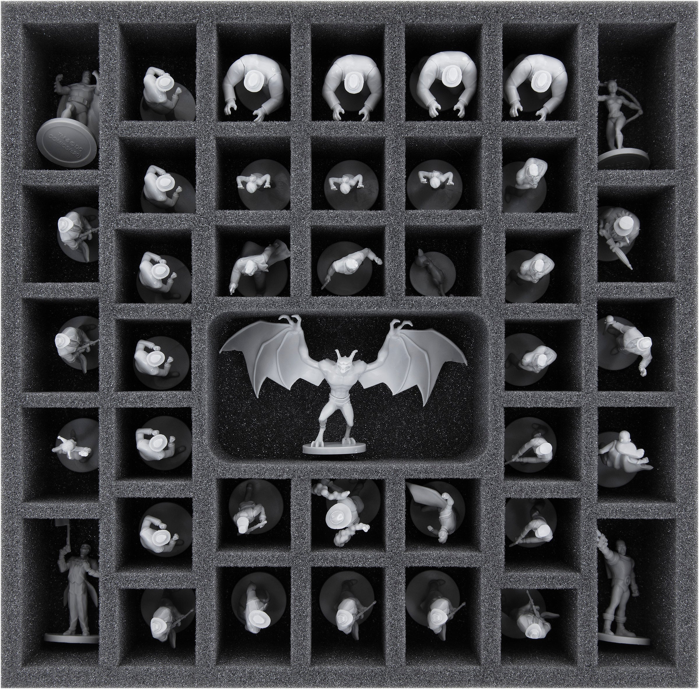 To ensure that your figures are well cared for, the set comes with a matching foam insert. Thanks to the custom-fit cut, all 40 plastic miniatures have a tight fit. The soft, fine-pored foam protects delicate parts from breaking off and the colors of your painted models from scratches and paint abrasion. So Man-Bat does not have to live without wings, and ugly defects do not disfigure two Faces’ healthy side.