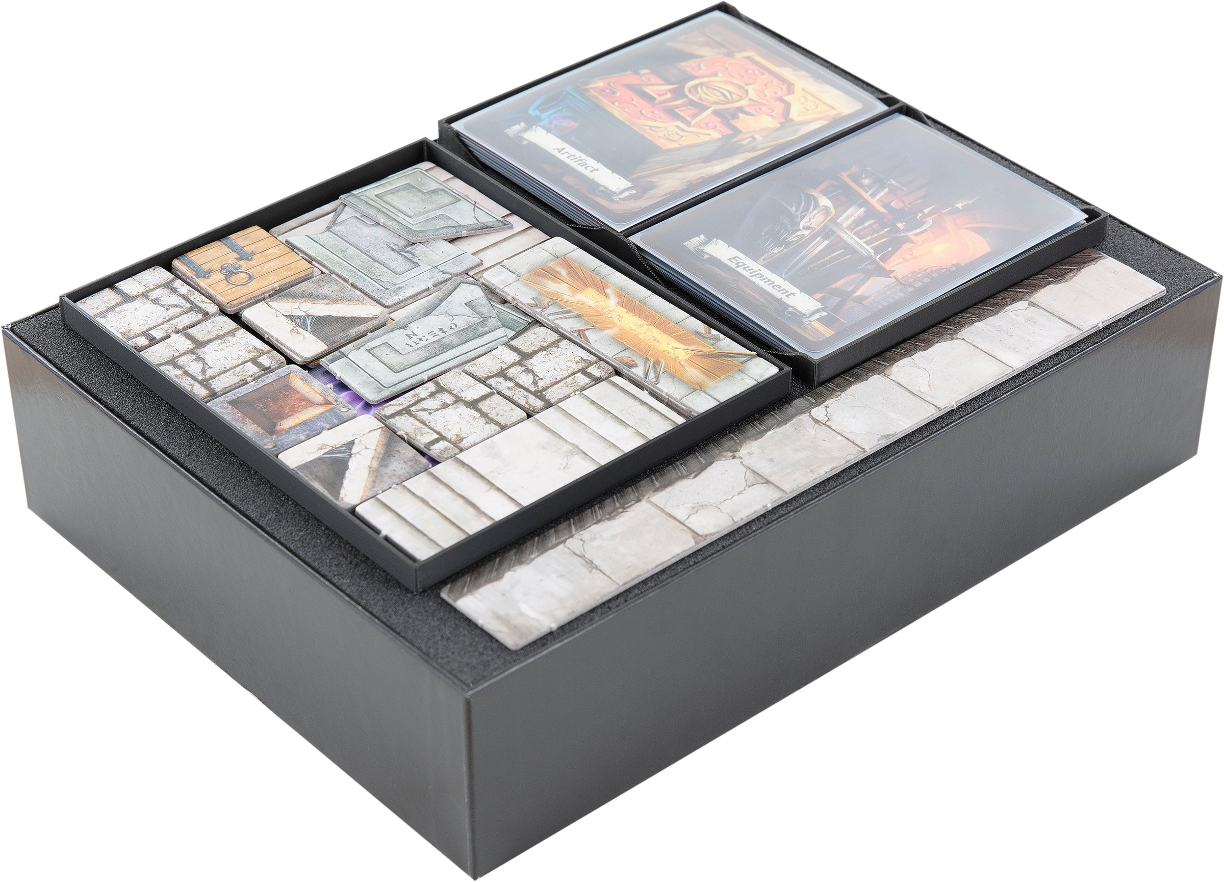 Just like the core game, the expansion "Kellars Keep" received an elaborate facelift. To make sure you don't get lost on your journey under the mountain and always have all the elements of your adventure ready at hand, here's this convenient foam set with a matching Organizer to safely store your miniatures and game materials.