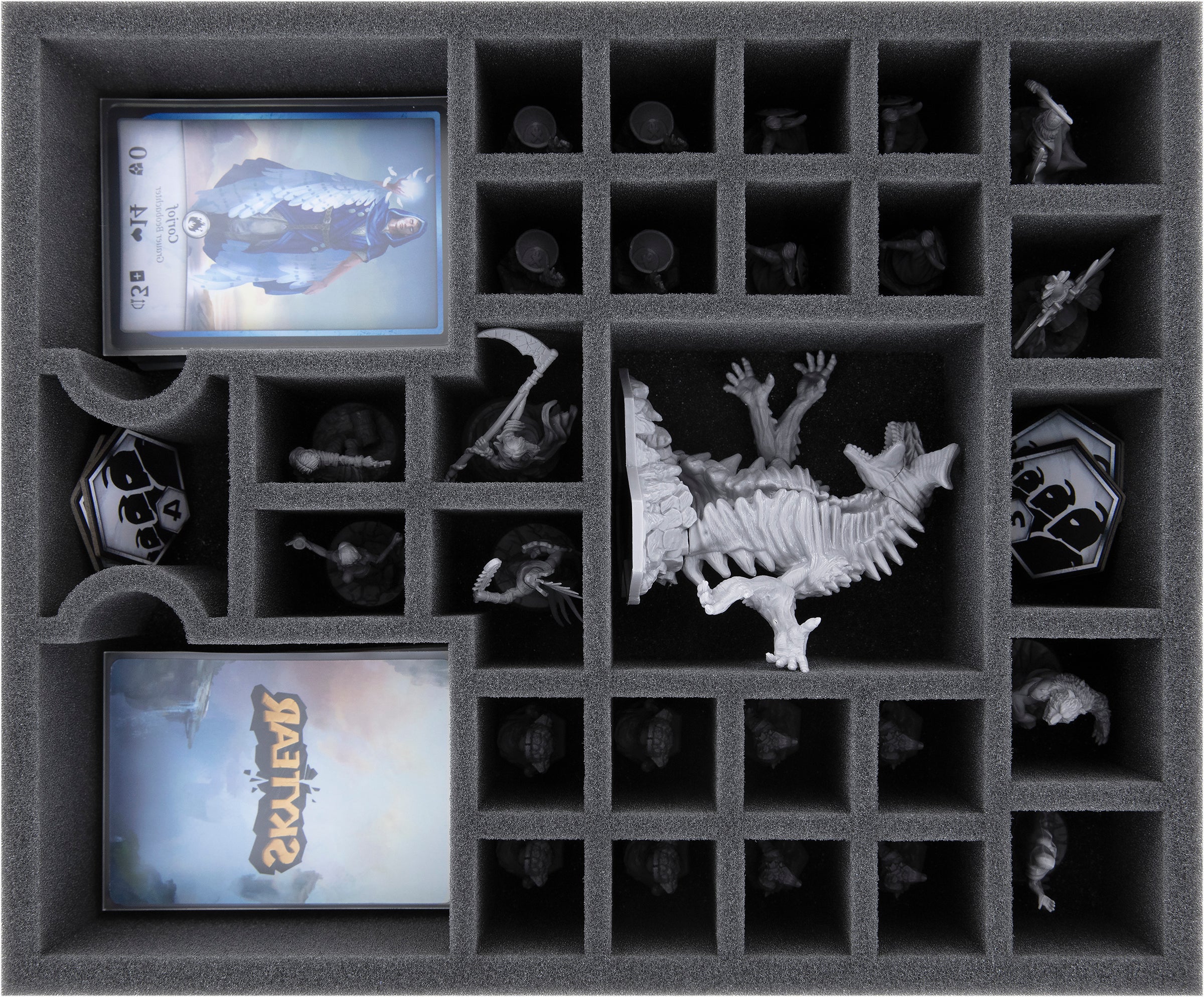 • 1 foam tray with 29 compartments for Skytear miniatures, cards, and game material
