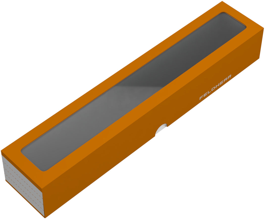 The clear window lid allows a view inside, so you can always see immediately which model is packed here.