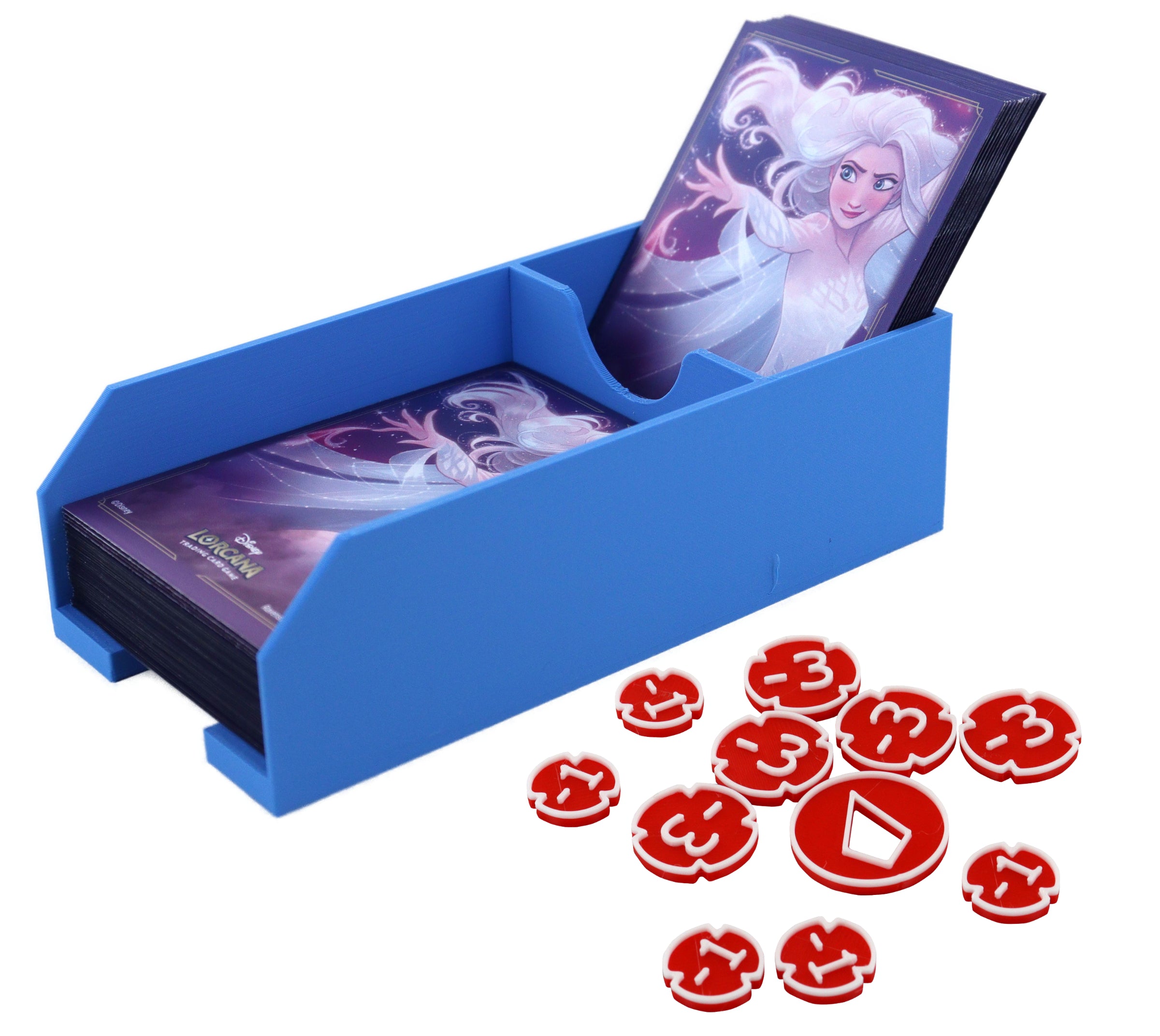 The card deck holder including deposit compartment is an indispensable addition, especially for sleeved cards, as it prevents the slippery cards from scattering across the table.