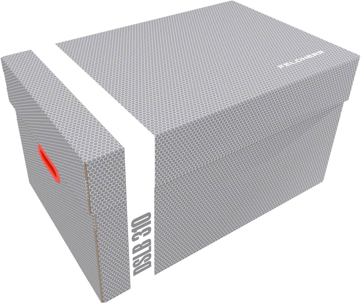 The DSLB310 Storage Box is made of coated, single-wall cardboard and is therefore not only light but also robust, making it ideal for storage and transport. The attachable foam topper reliably protects your collection from dust and other external influences. You can easily transport the box with the plastic-reinforced carrying handle on the side.