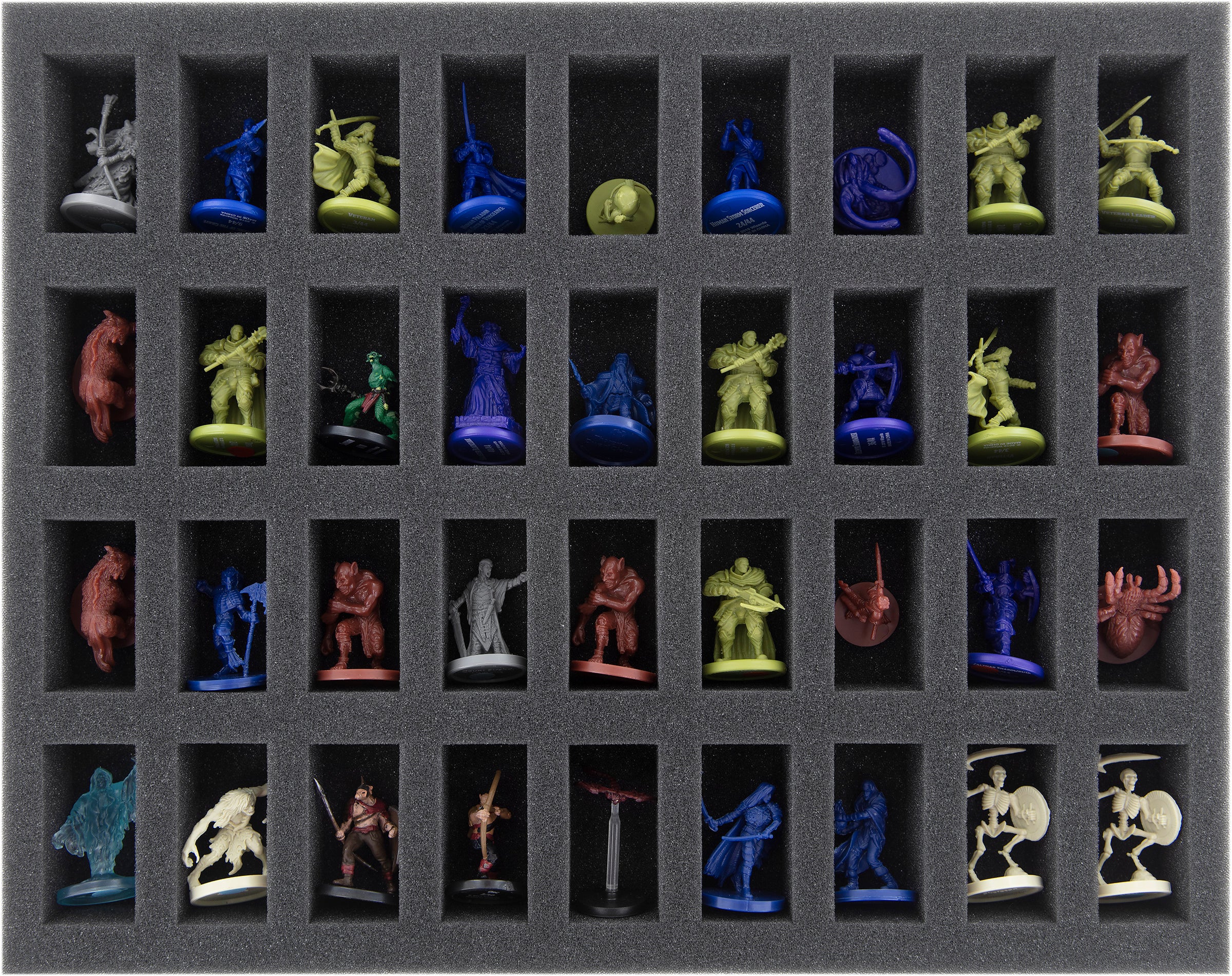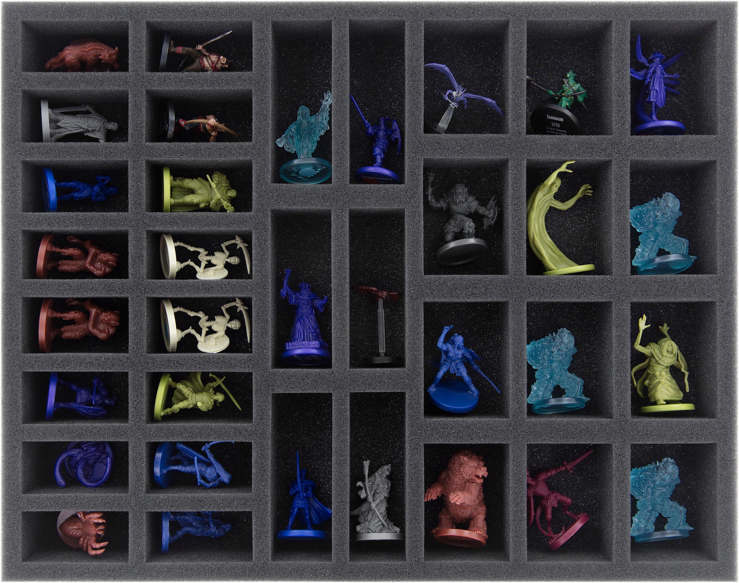 With this practical and convenient set of storage box, filled with foam inserts especially for D&D figures, and the transporter bag, your Dungeons & Dragons miniature collection is not only neatly stowed away, it can also be transported to the next game round comfortably and well protected.