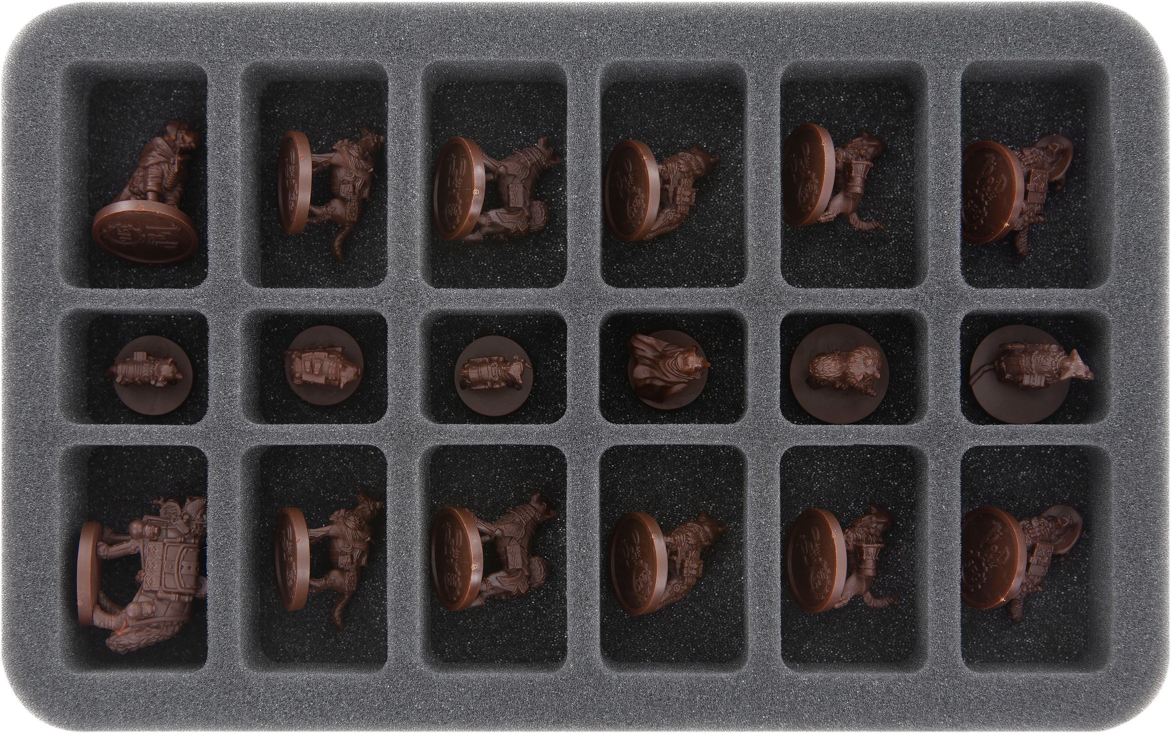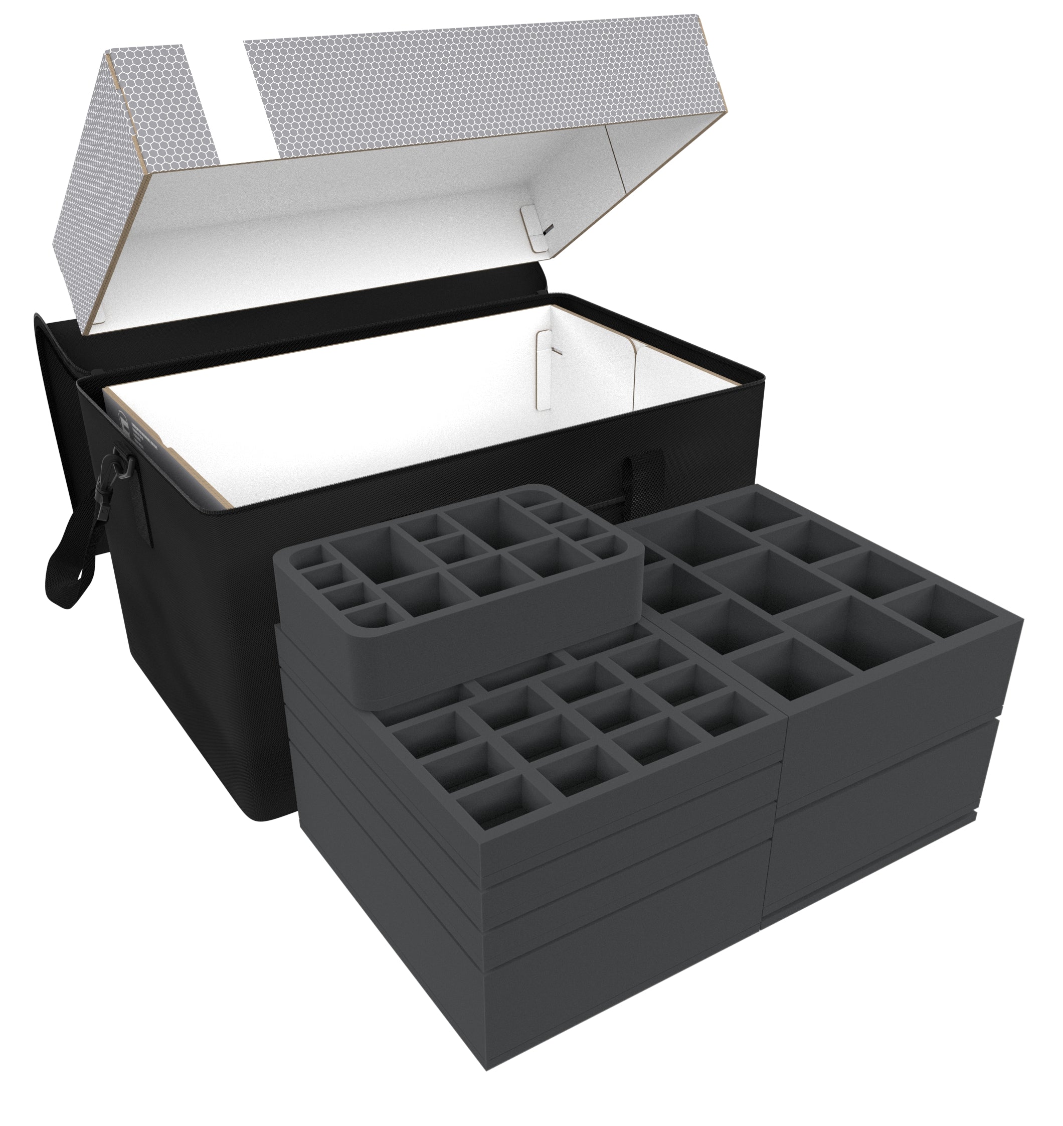 You can store a wide variety of models on 10 foam trays. From Goblin to Giant, from Small to Huge - The package offers space for more than 170 miniatures.