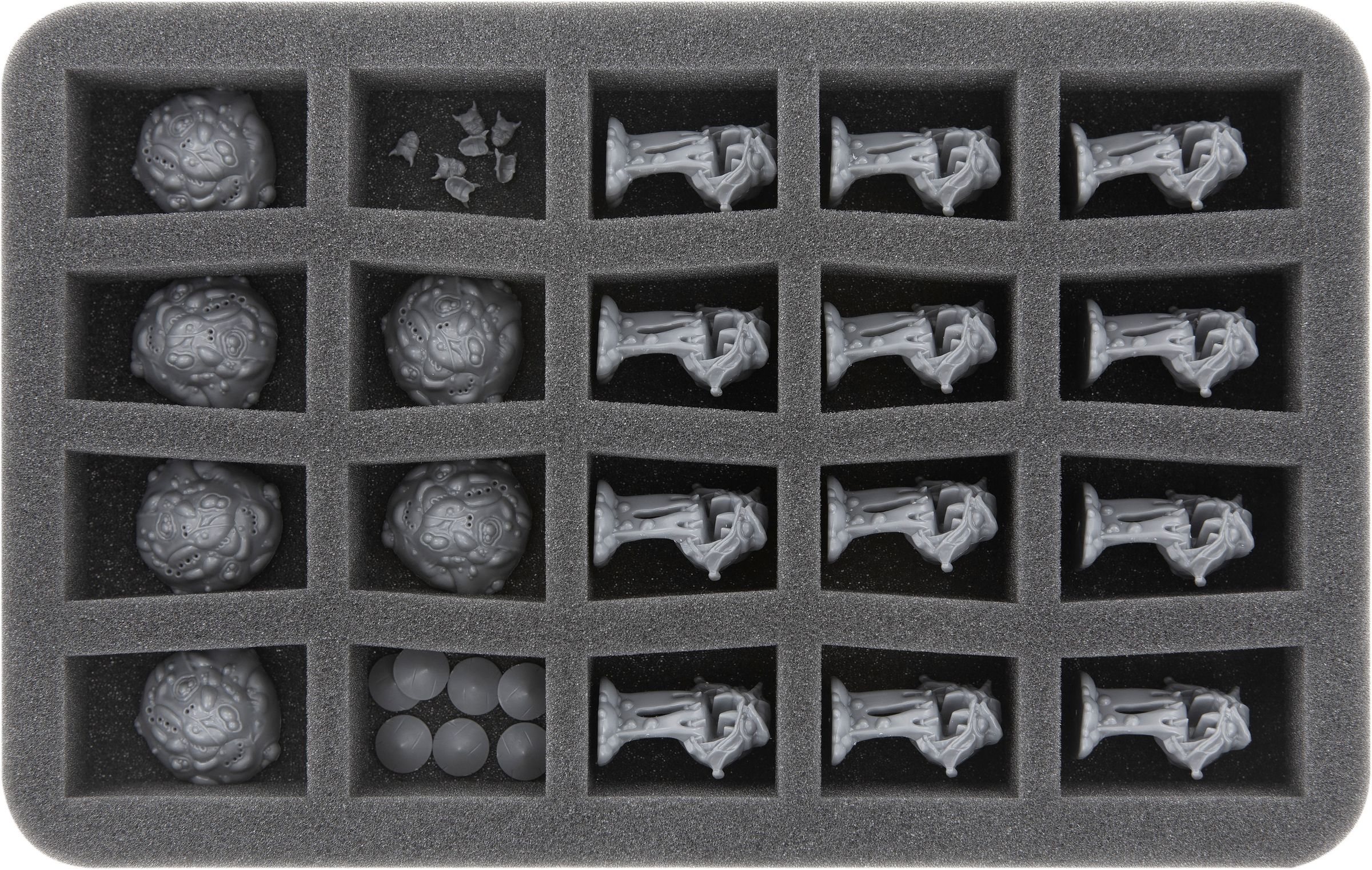 - 1 foam tray with 20 compartments for small miniatures (HS035C5BO)